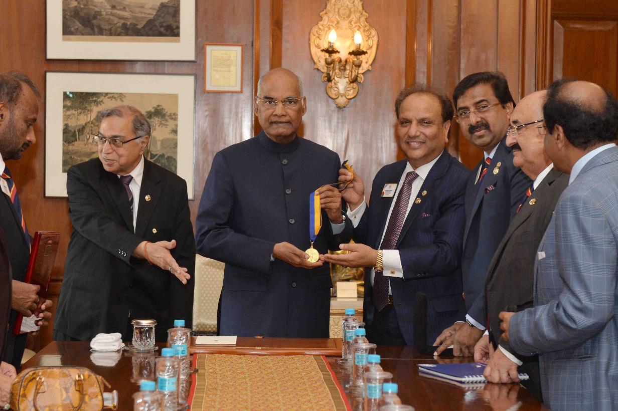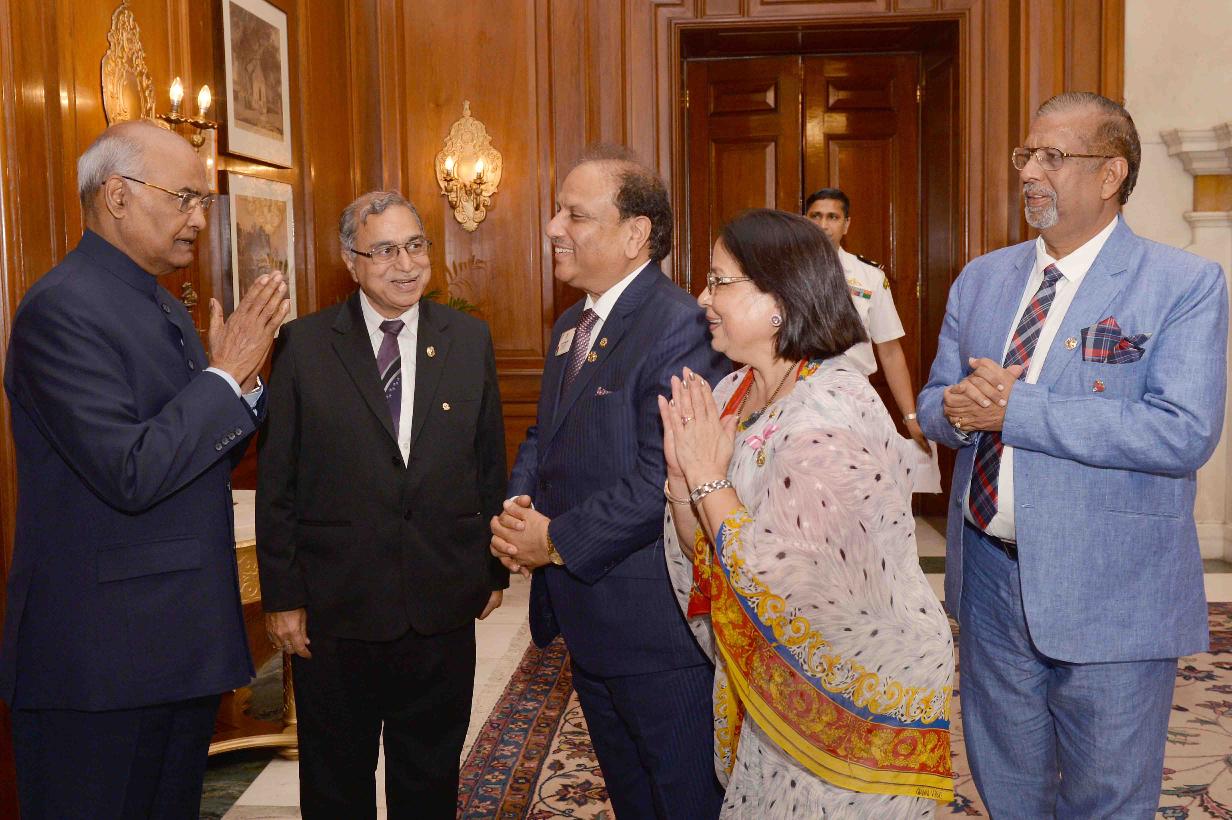 | Caption: | Shri Jagdish Prasad Gupta along with Dr. Naresh Aggarwal, International President, Lions Club and others meeting with the President of India, Shri Ram Nath Kovind, at Rashtrapati Bhavan on April 17, 2018. |