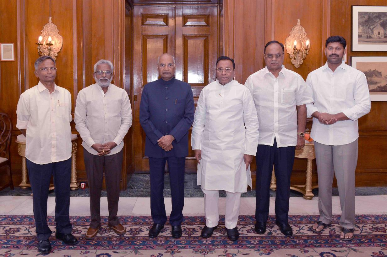 | Caption: | Shri M. Rajamohan Reddy, Leader of YSRCP in Lok Sabha along with a delegation of MPs belonging to YSR Congress Party from Andhra Pradesh meeting with the President of India, Shri Ram Nath Kovind, at Rashtrapati Bhavan on April 17, 2018. |