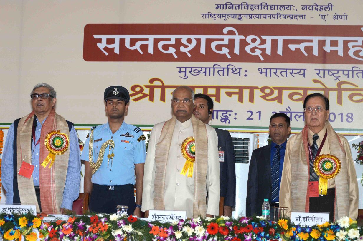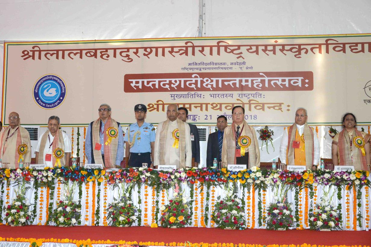 | Caption: | The President of India, Shri Ram Nath Kovind gracing the 17th Convocation of Shri Lal Bahadur Shastri Rashtriya Sanskrit Vidyapeetha, in New Delhi on April 21, 2018. |