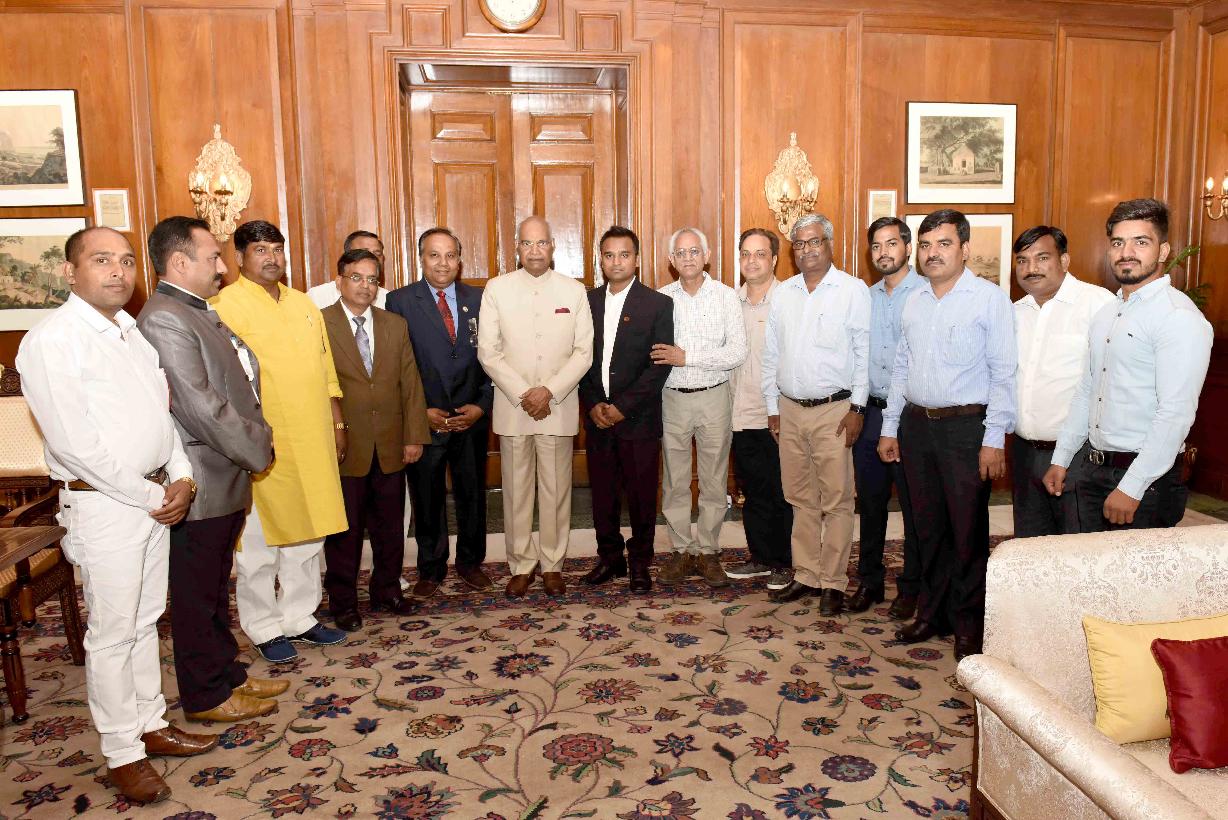 | Caption: | Shri Rishi Bhargav of Kanpur with others meeting with the President of India, Shri Ram Nath Kovind, at Rashtrapati Bhavan on April 21, 2018. |