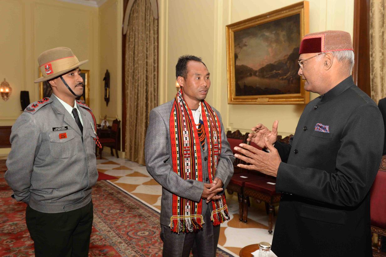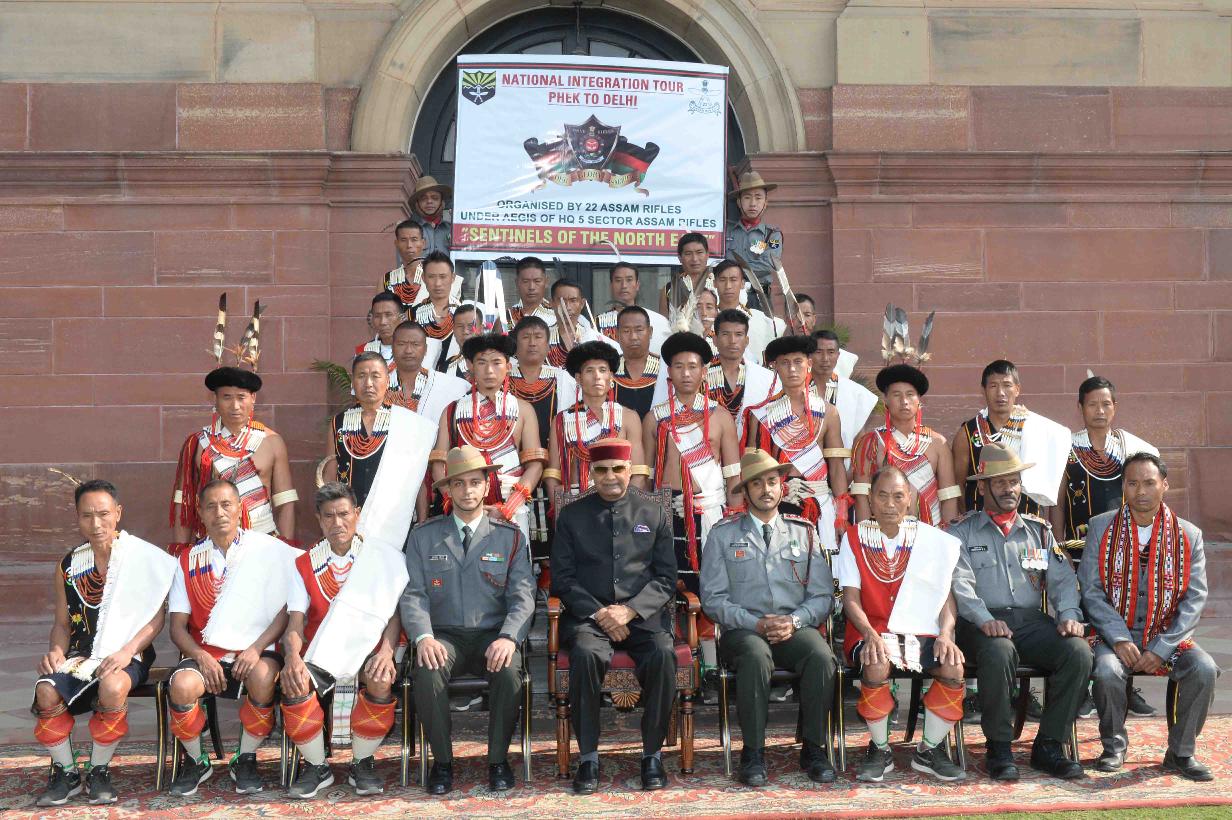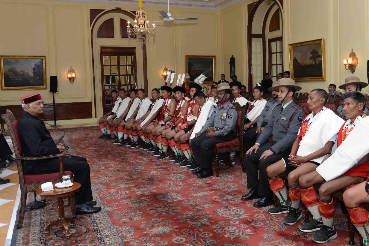 | Caption: | The President of India, Shri Ram Nath Kovind meeting with the people from Thurutsuswumi Village, Phek District, Nagaland attending National Integration Tour, organised by the 22 Assam Rifles, at Rashtrapati Bhavan on January 15, 2018. |