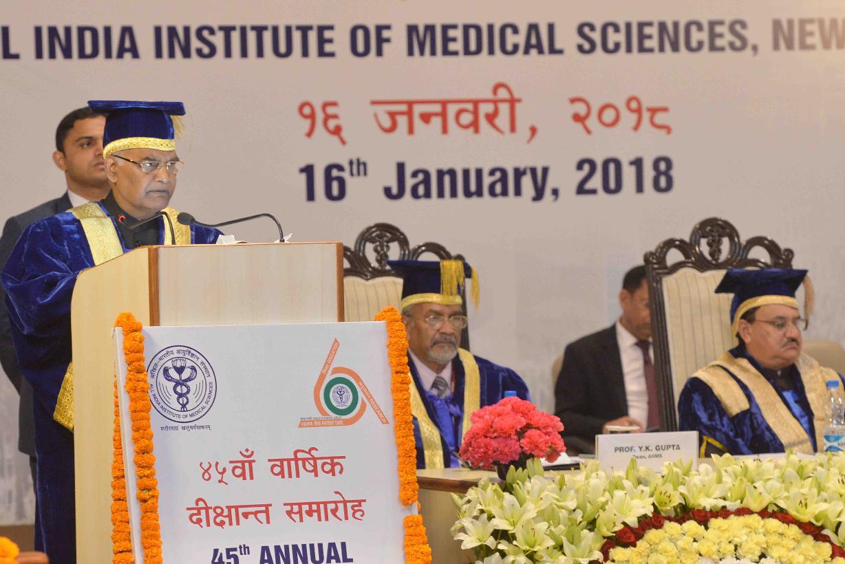 | Caption: | The President of India, Shri Ram Nath Kovind addressing the 45th Annual Convocation of the All India Institute of Medical Sciences (AIIMS), in New Delhi on January 16, 2018. |