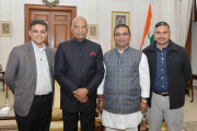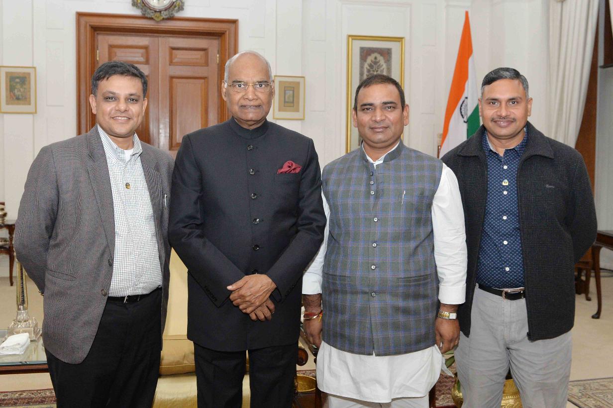 | Caption: | Shri Ajit Singh Pal, MLA from Sikandra Vidhansabha, Kanpur Dehat along with Shri Ashish Singh and Shri Rishabh Kothari from Kanpur meeting with the President of India, Shri Ram Nath Kovind, at Rashtrapati Bhavan on January 16, 2018. |