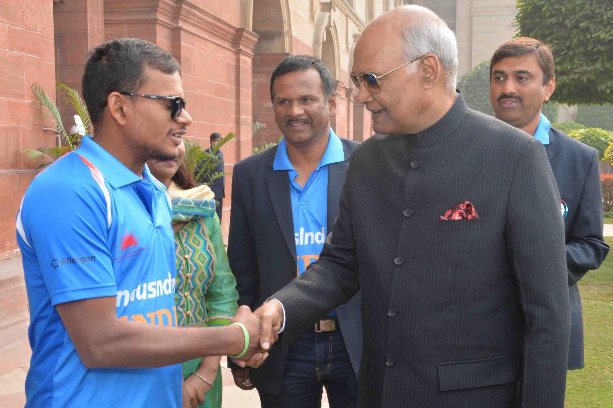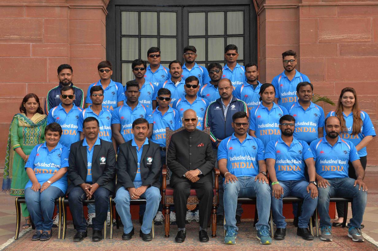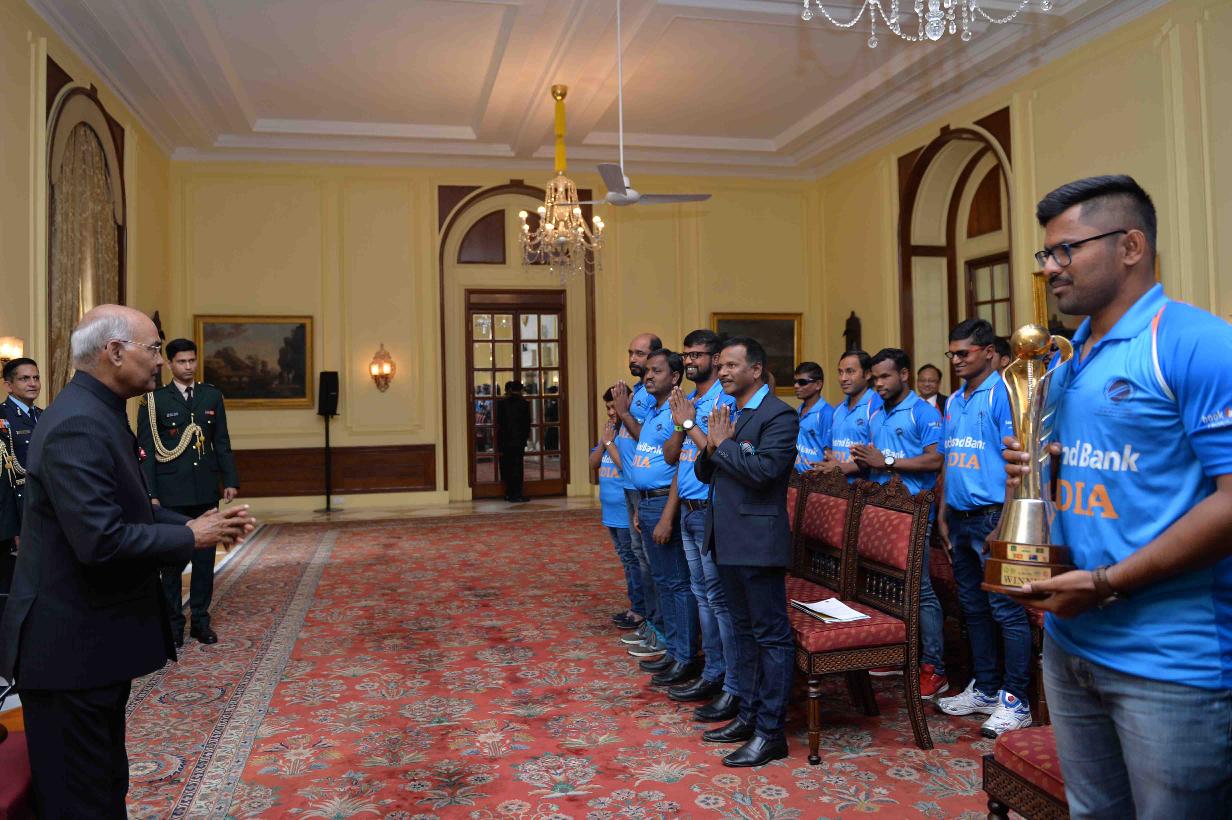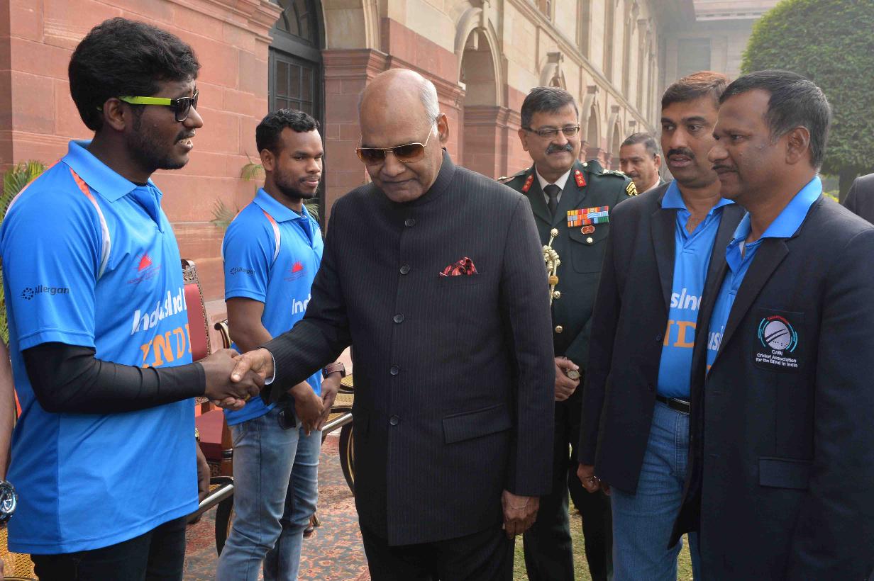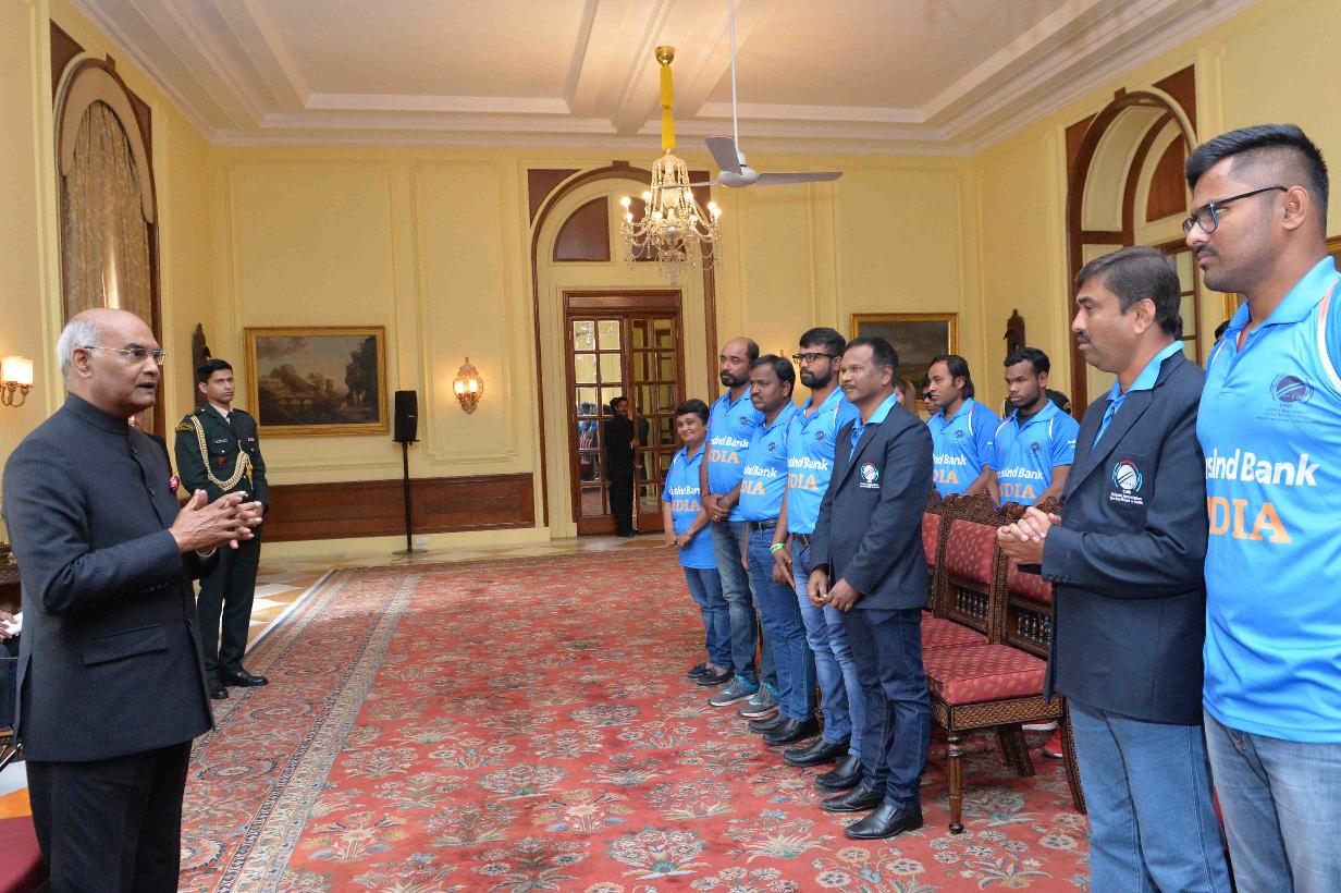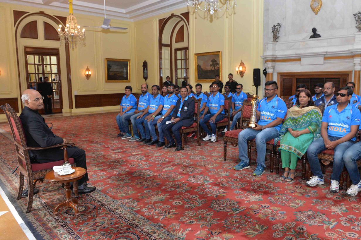 | Caption: | The President of India, Shri Ram Nath Kovind meeting with the players of Indian Blind Cricket Team, their support staff and office bearers of World Blind Cricket, at Rashtrapati Bhavan on January 24, 2018 |
