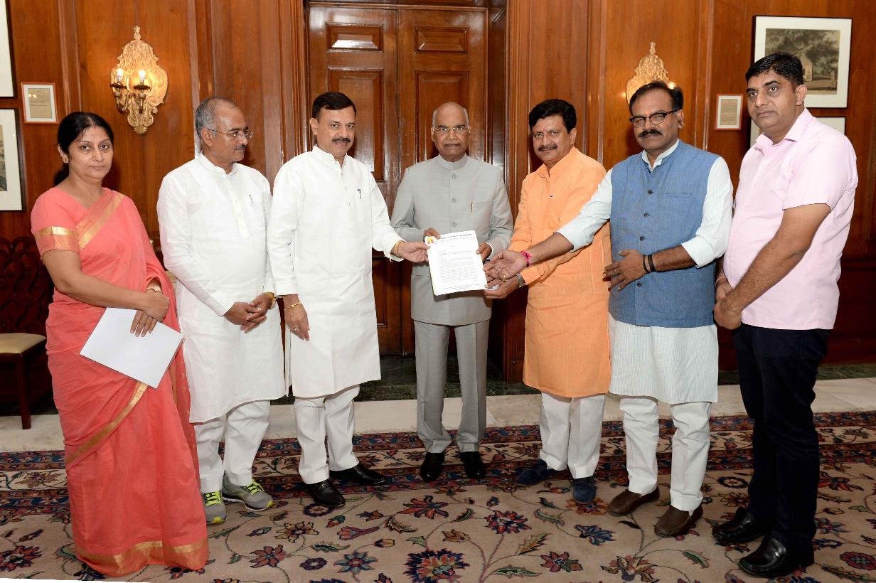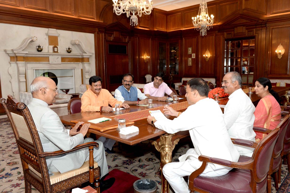 | Caption: | Shri Uday Pratap Singh, MP (LS) from Hoshangabad (Madhya Pradesh) alongwith Shri Ganesh Singh, MP (LS), Shri Alok Sanjan, MP (LS), Shri Rodmal Nagar, MP (LS) and others meeting with the President of India, Shri Ram Nath Kovind, at Rashtrapati Bhavan on August 09, 2018. |