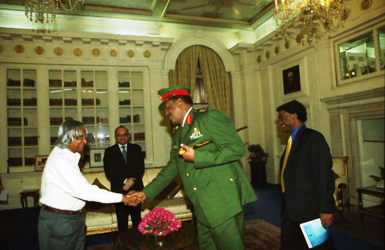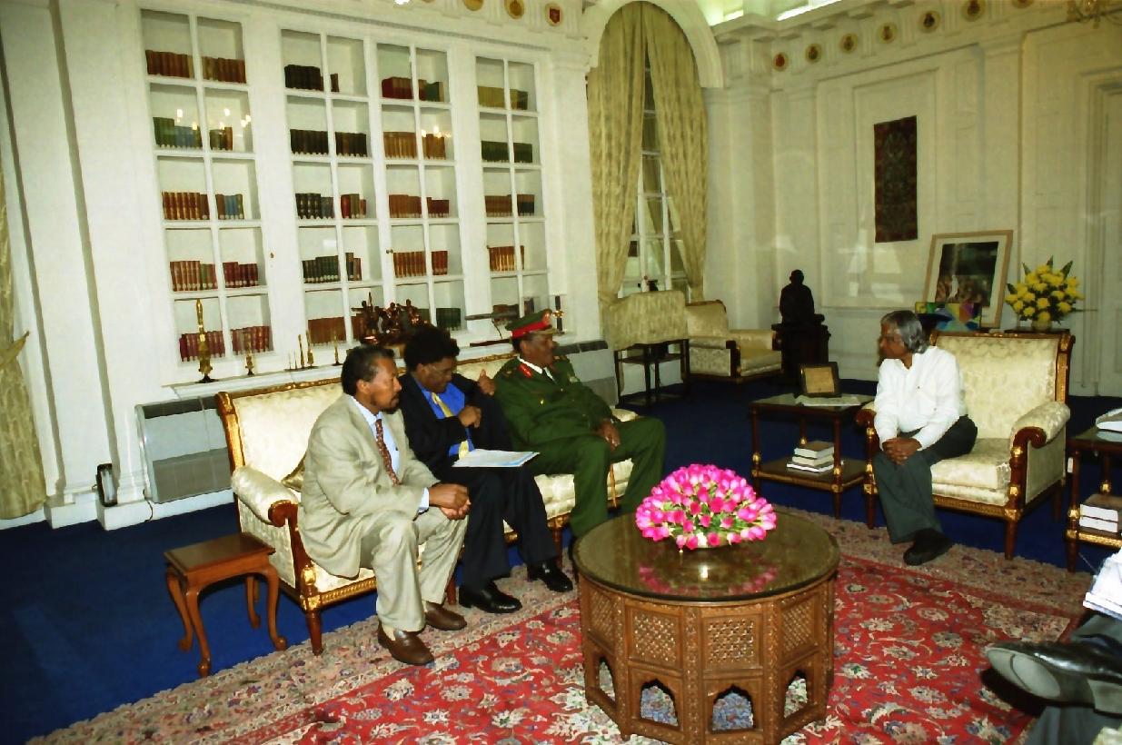 | Caption: | The Defence Minister of Sudan, HE Maj Gen Bakri Hassan Salih calling on the President of India, Dr A P J Abdul Kalam at Rashtrapati Bhavan in New Delhi on Dec 12, 2003 |