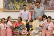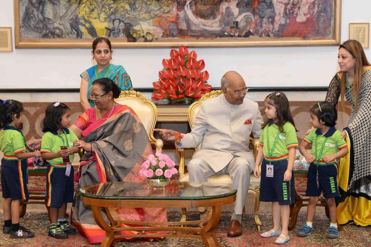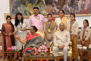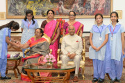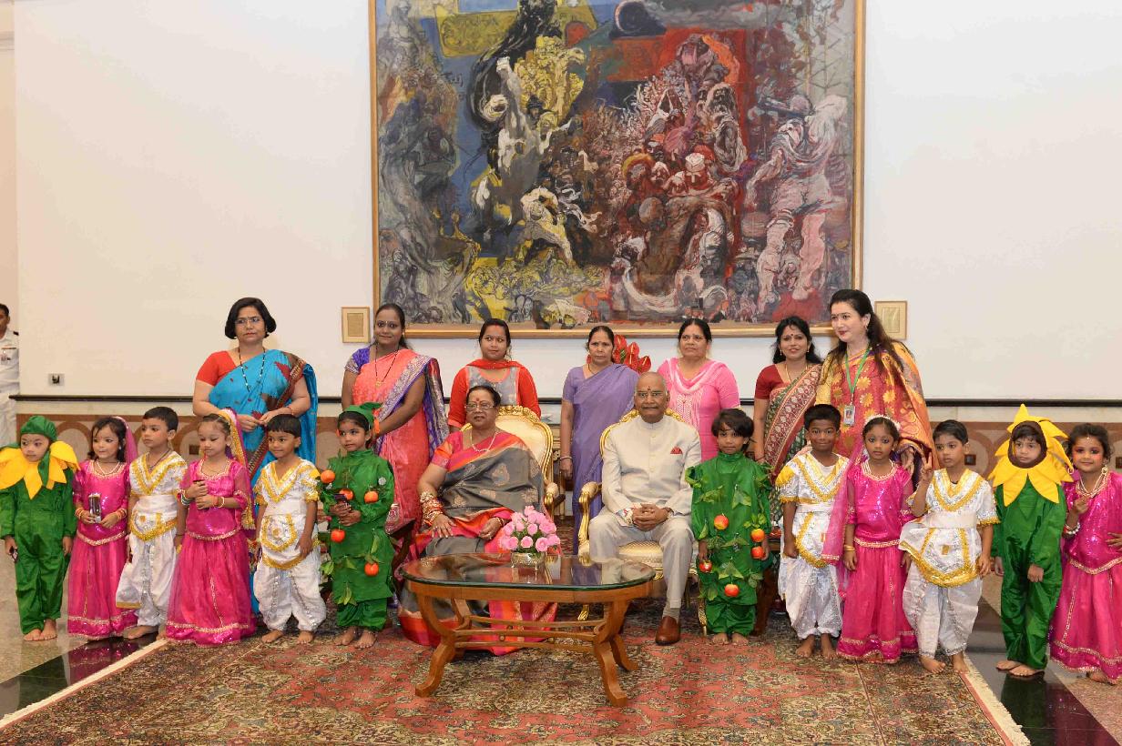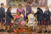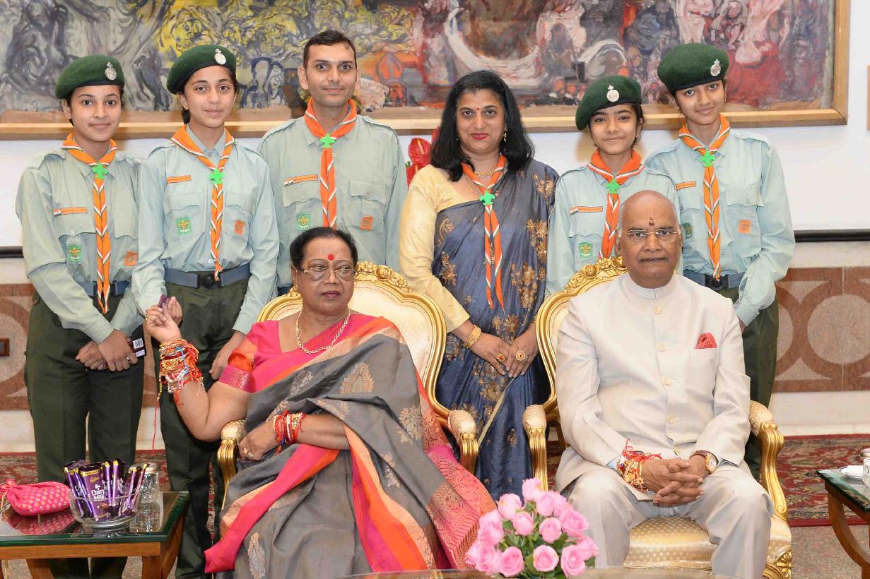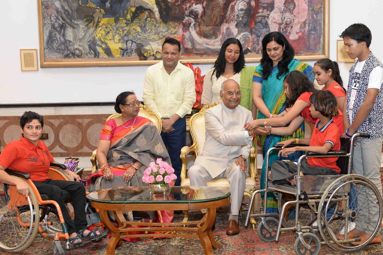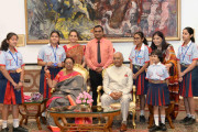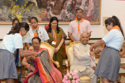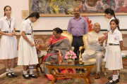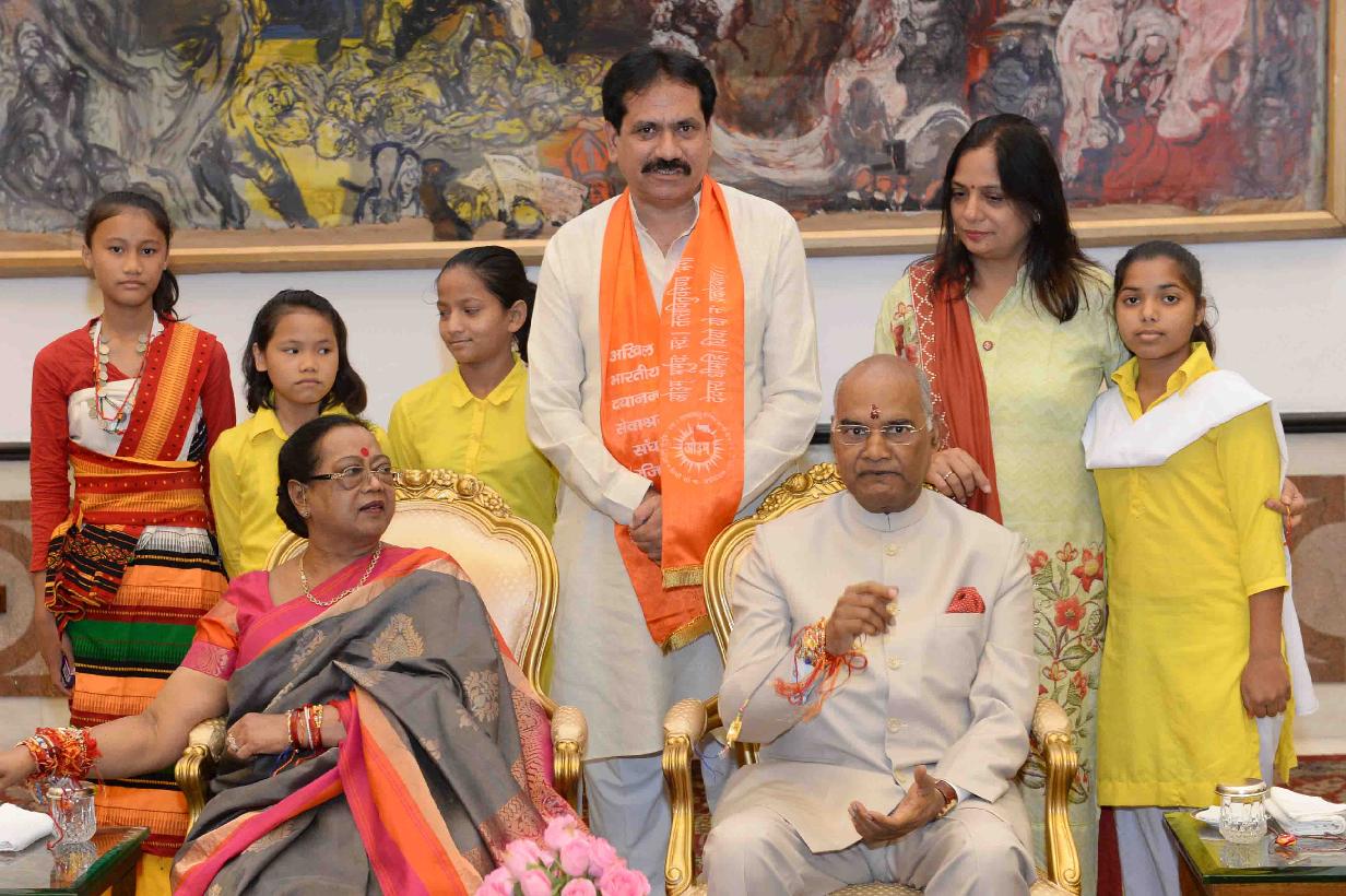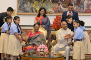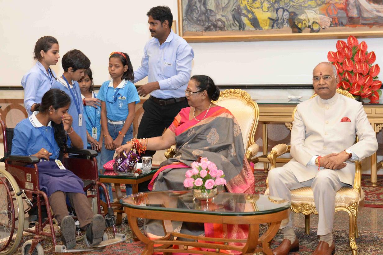 | Caption: | The President of India, Shri Ram Nath Kovind receiving Raksha Bandhan greetings from the students and children from various Schools and Organizations, at Rashtrapati Bhavan Cultural Centre on August 26, 2018. |