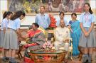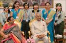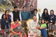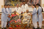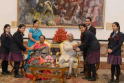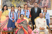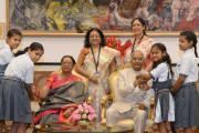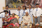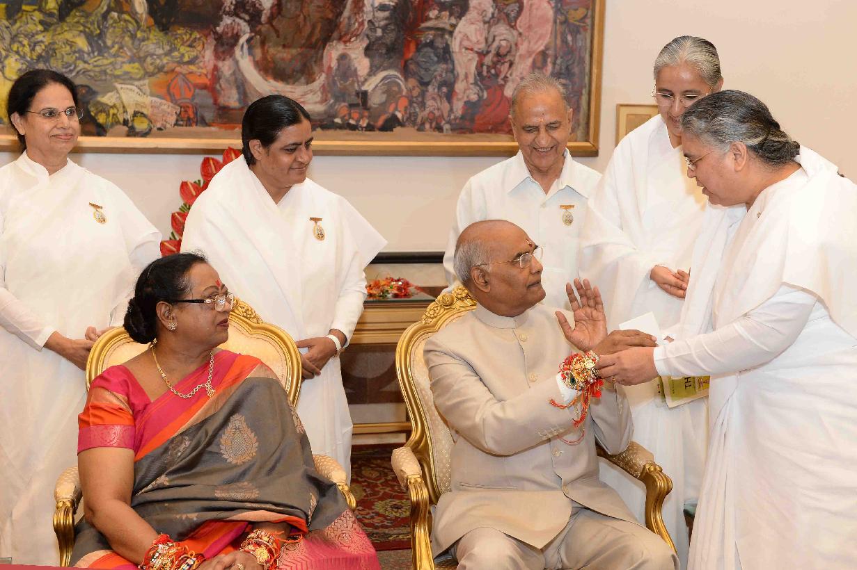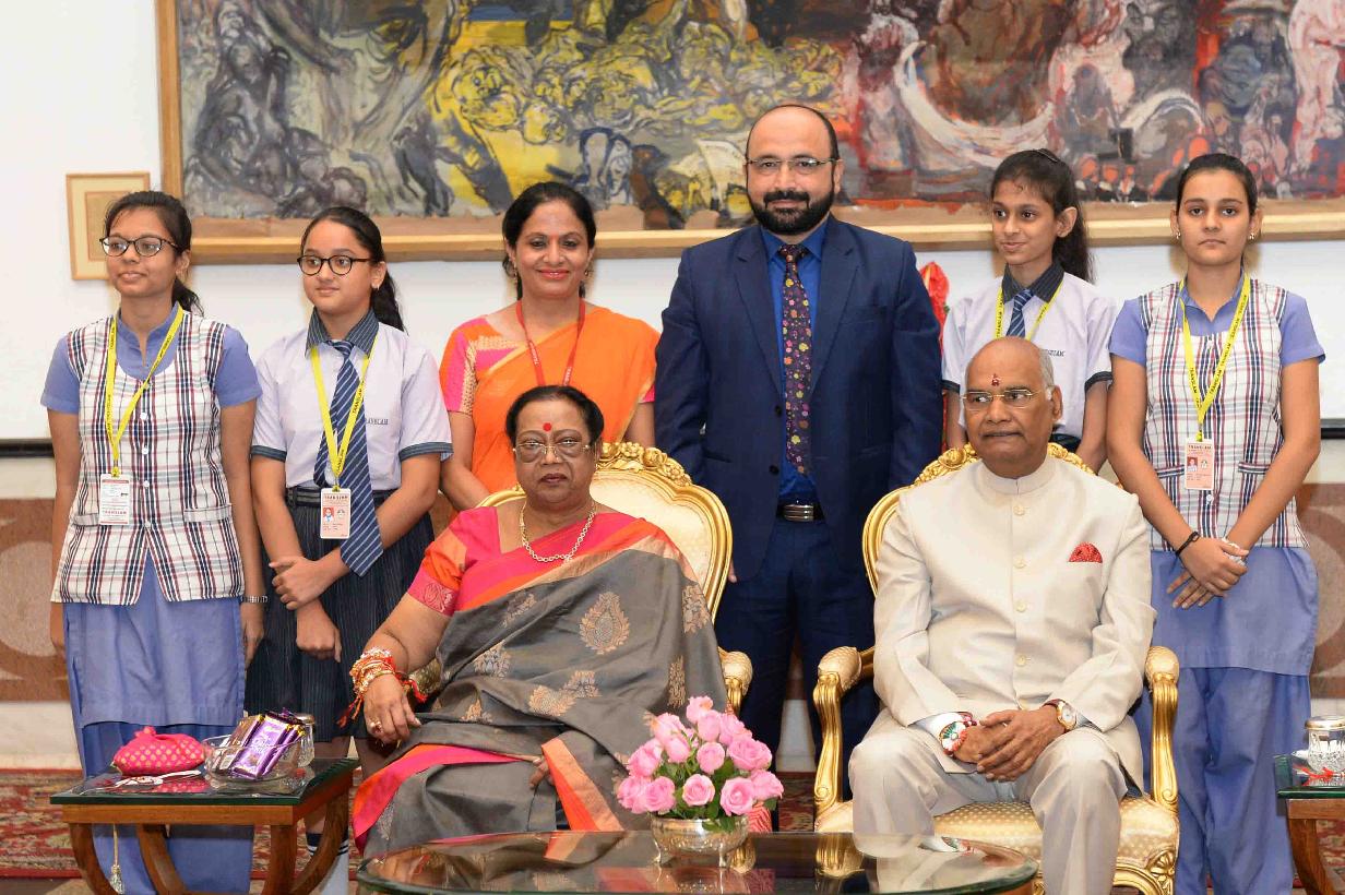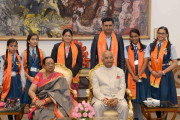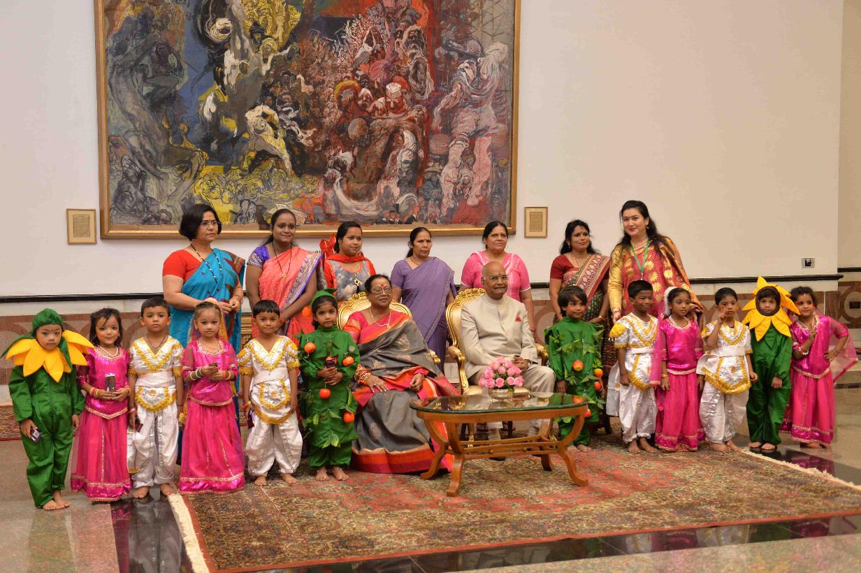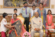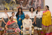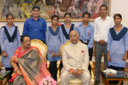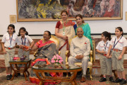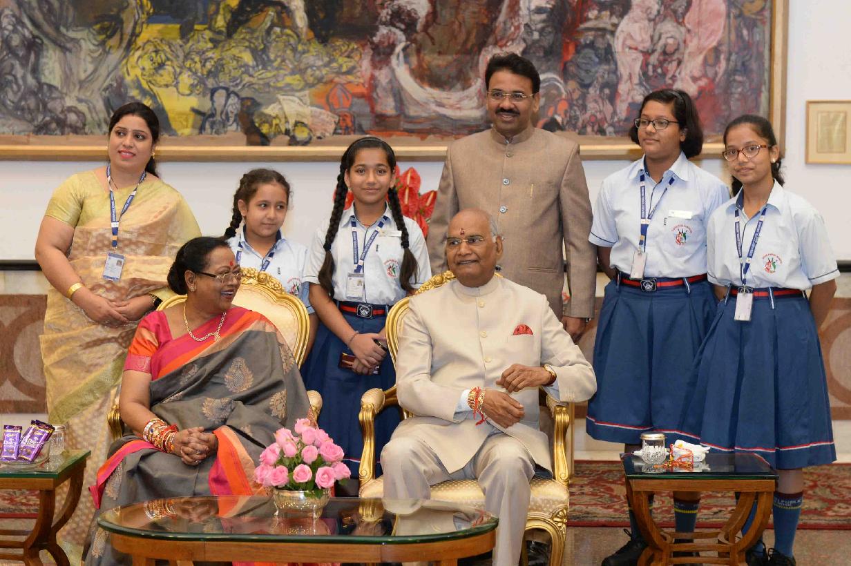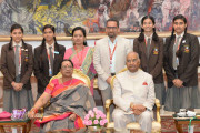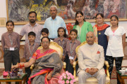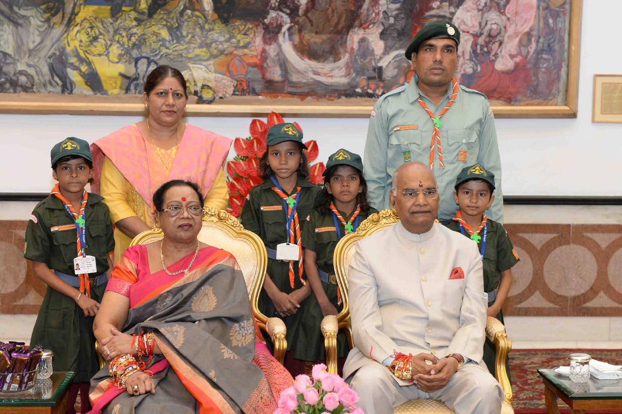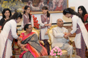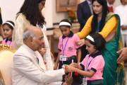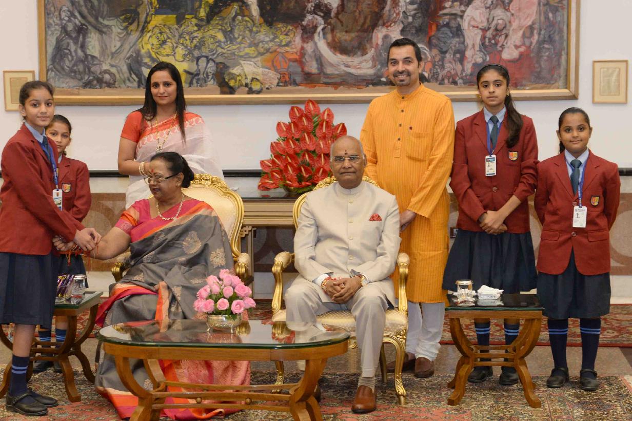 | Caption: | The President of India, Shri Ram Nath Kovind receiving Raksha Bandhan greetings from the students and children from various Schools and Organizations, at Rashtrapati Bhavan Cultural Centre on August 26, 2018. |