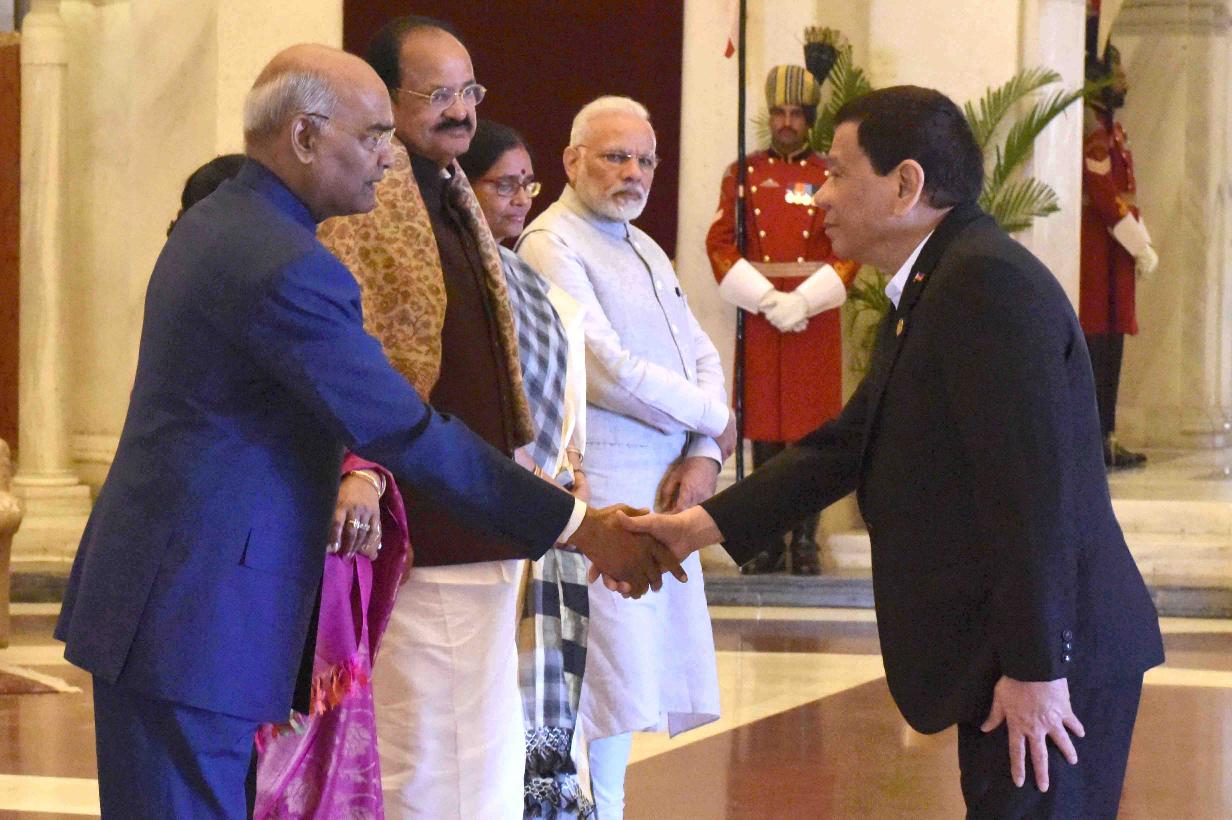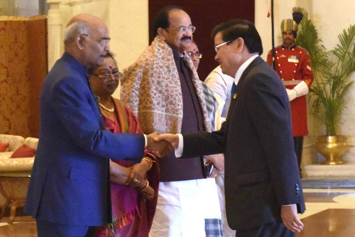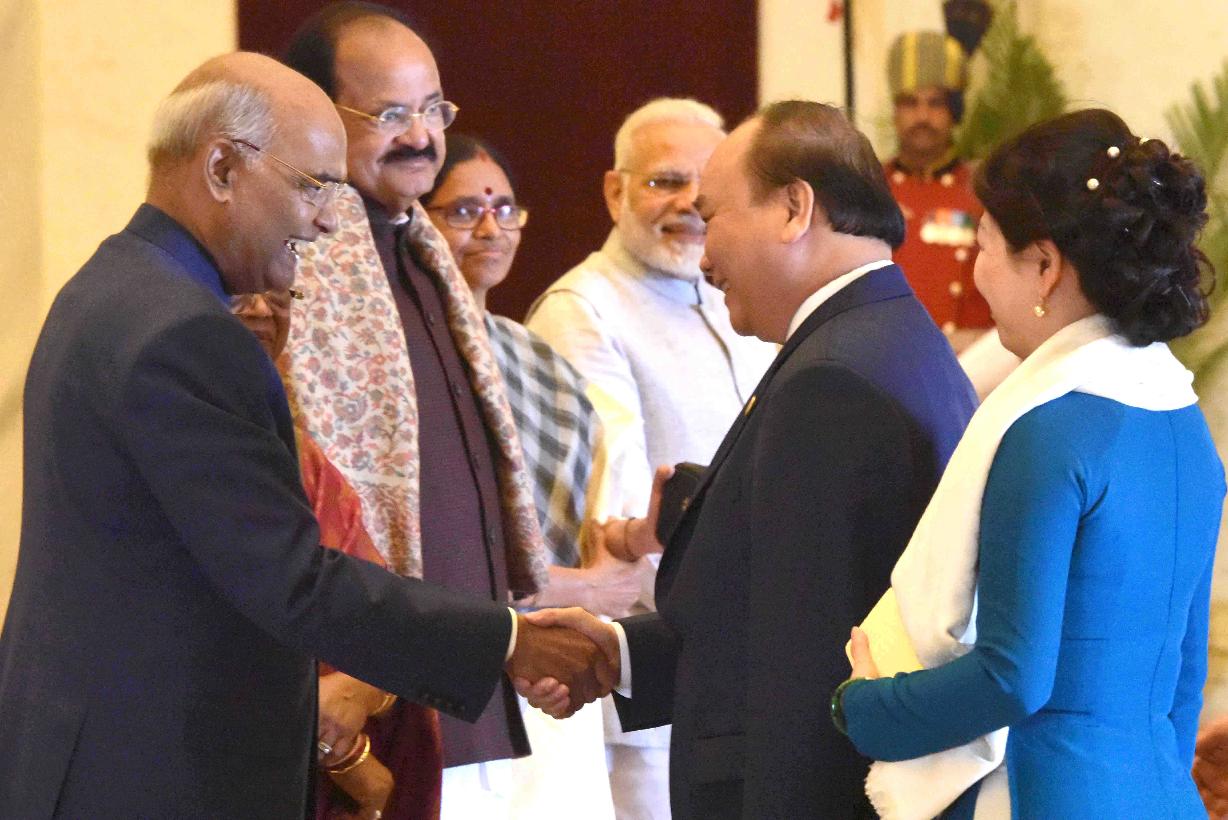 | Caption: | The President of India, Shri Ram Nath Kovind and the First Lady of India, Smt. Savita Kovind receiving the ASEAN Heads of State and Government, at Rashtrapati Bhavan on January 25, 2018 |