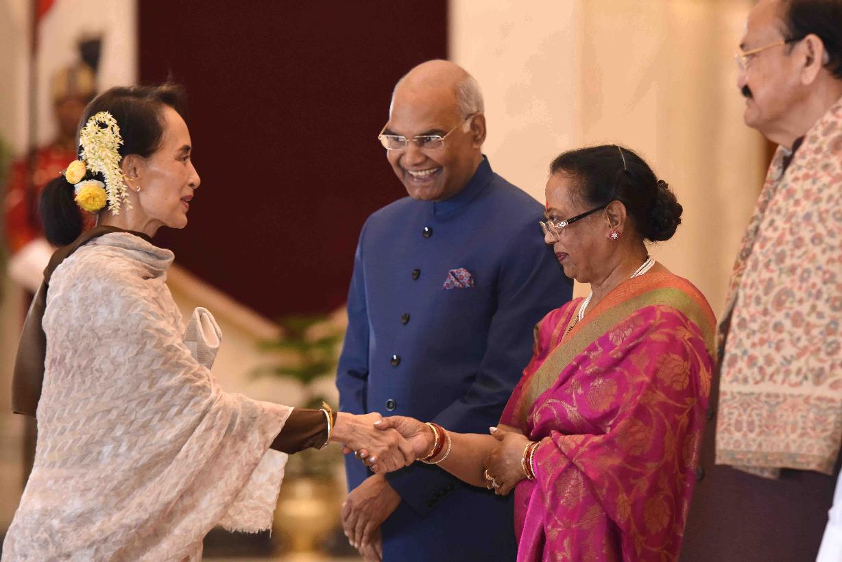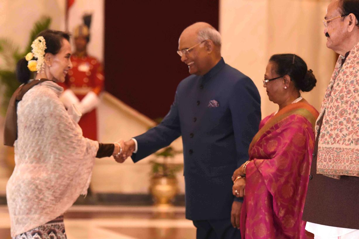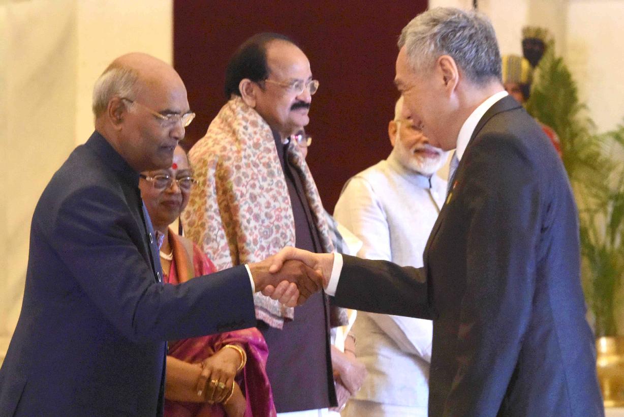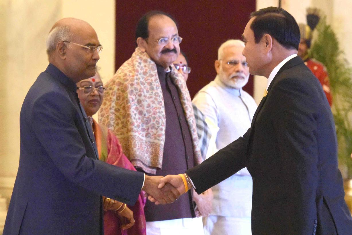 | Caption: | The President of India, Shri Ram Nath Kovind and the First Lady of India, Smt. Savita Kovind receiving the ASEAN Heads of State and Government, at Rashtrapati Bhavan on January 25, 2018 |