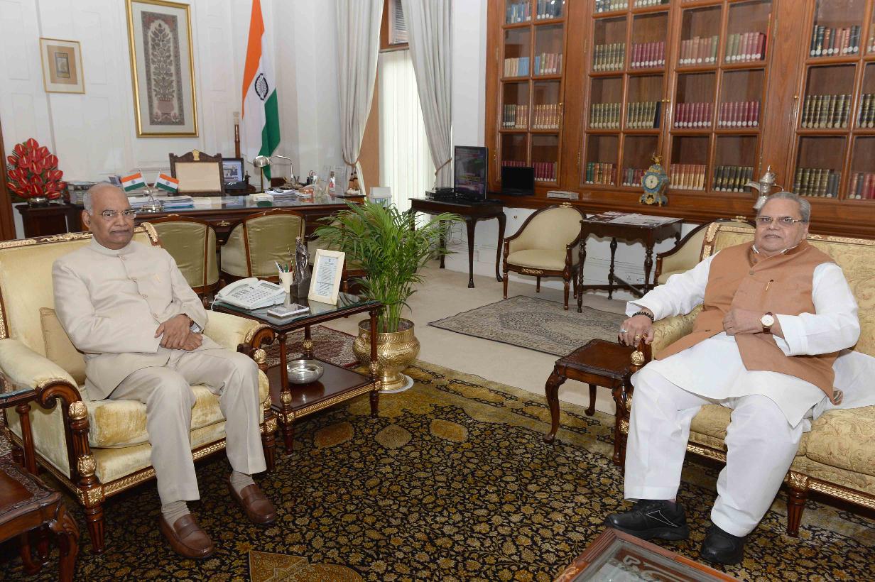 | Caption: | The Governor of Jammu & Kashmir, Shri Satya Pal Malik calling on the President of India, Shri Ram Nath Kovind, at Rashtrapati Bhavan on August 27, 2018. |