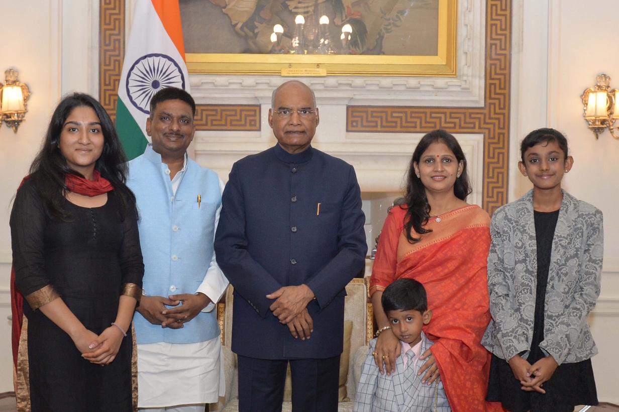 | Caption: | Dr. Vikram Singh Patel from Prayagraj along with his family meeting with the President of India, Shri Ram Nath Kovind, at Rashtrapati Bhavan on November 05, 2019. |