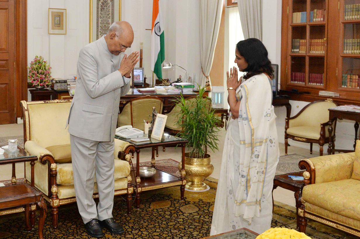 | Caption: | The Ambassador-designate of India to the Republic of Korea, Smt. Sripriya Ranganathan meeting with the President of India, Shri Ram Nath Kovind, at Rashtrapati Bhavan on August 01, 2018. |