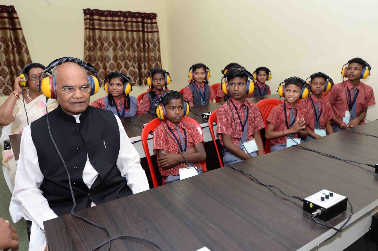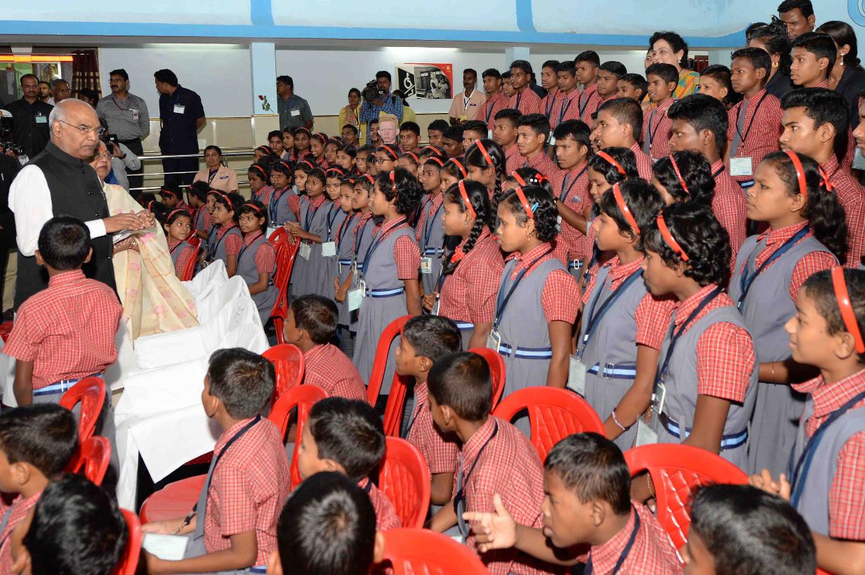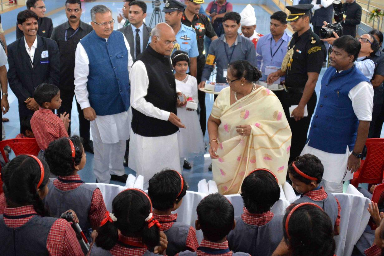 | Caption: | The President of India, Shri Ram Nath Kovind interacting with Divyang Students at Saksham School, Shri Atal Bihari Vajpayee Education City, at Jawanga, Dantewada, in Chhattishgarh on July 25, 2018. |