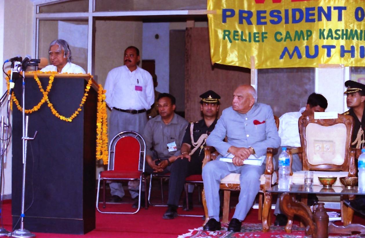 | Caption: | The President of India, Dr A P J Abdul Kalam visiting the Migrant Camp at Bhawan in Jammu and Kashmir on June 26, 2003 |