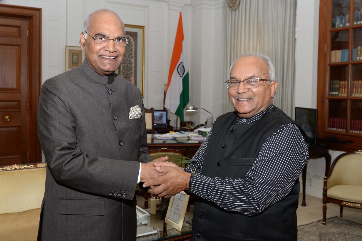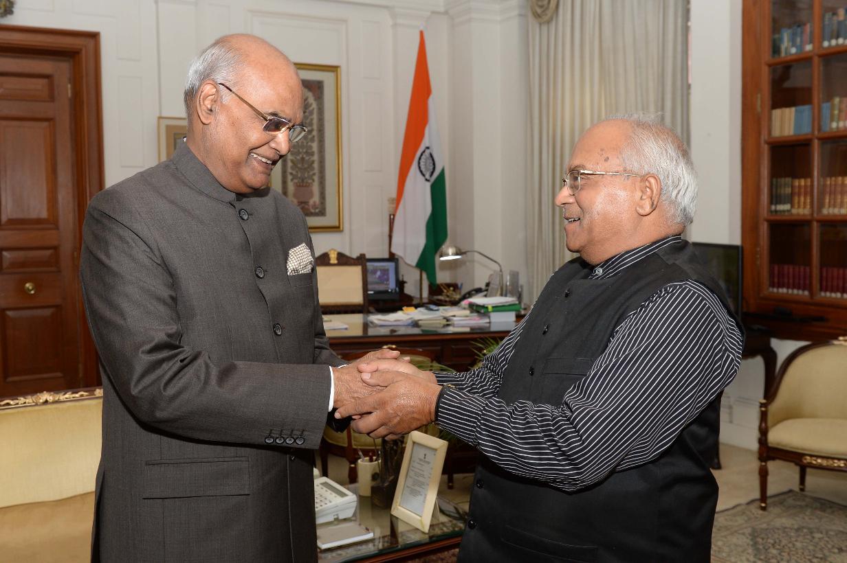 | Caption: | Dr. Ved Pratap Vaidik meeting with the President of India, Shri Ram Nath Kovind, at Rashtrapati Bhavan on July 27, 2018. |