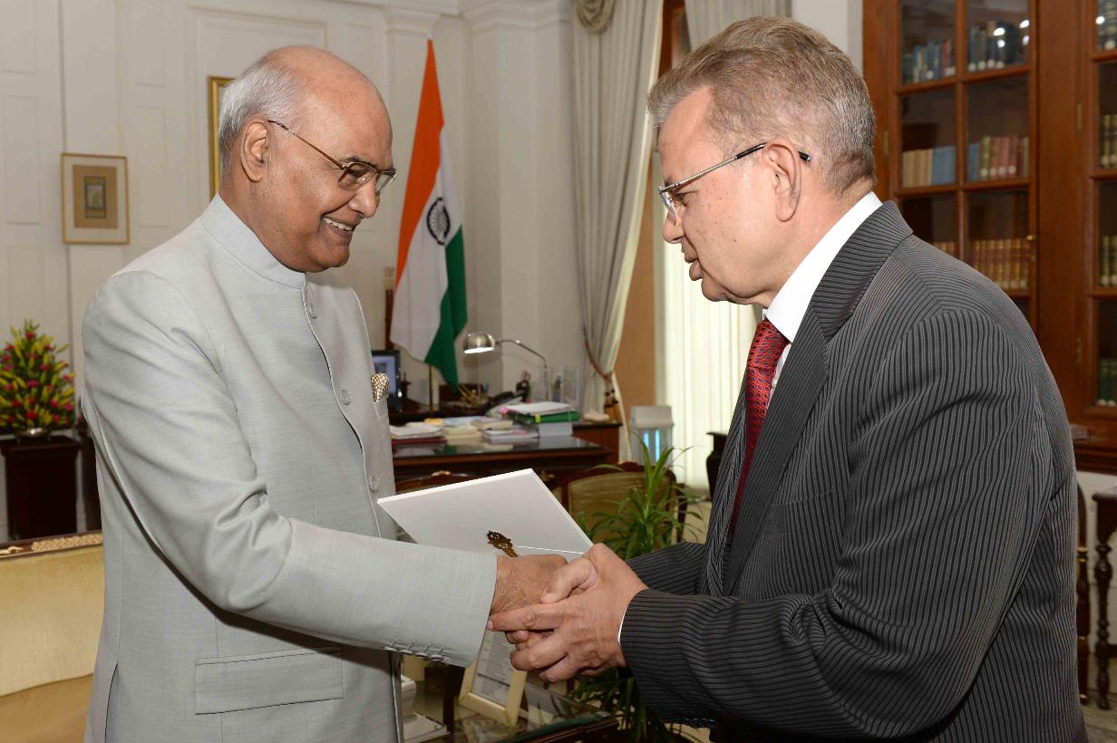 | Caption: | Shri Justice Dalveer Bhandari, Judge, International Court of Justice meeting with the President of India, Shri Ram Nath Kovind, at Rashtrapati Bhavan on July 30, 2018. |
