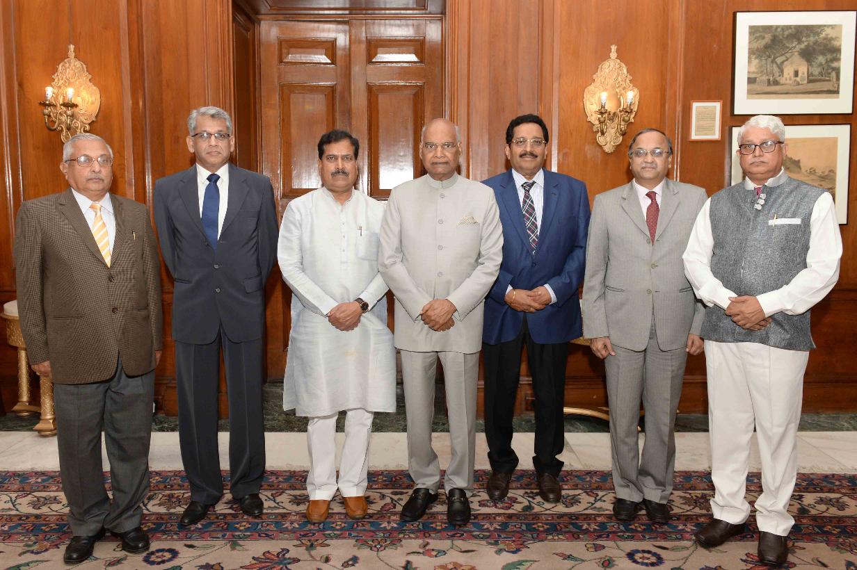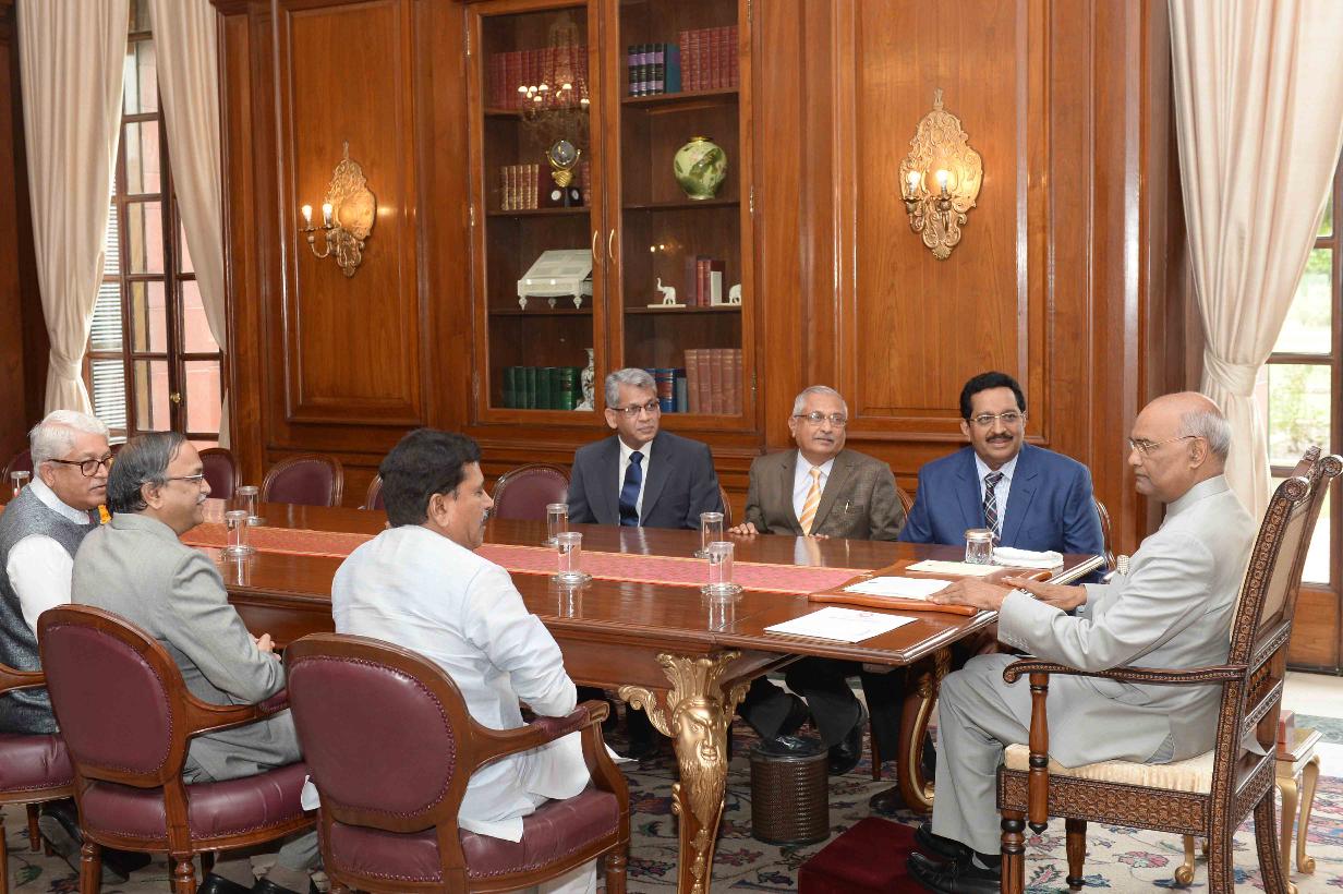 | Caption: | Shri Suresh Angadi, MP (LS) & Chairman, House Committee alongwith Governing Council Members of Karnataka Law Society meeting with the President of India, Shri Ram Nath Kovind, at Rashtrapati Bhavan on July 30, 2018. |