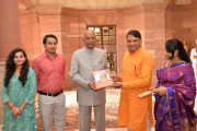 | Caption: | Dr. Pawanputra Badal, Editor/Manager, Rashtra Dharma, Lucknow along with his family members meeting with the President of India, Shri Ram Nath Kovind, at Rashtrapati Bhavan on July 30, 2018. |