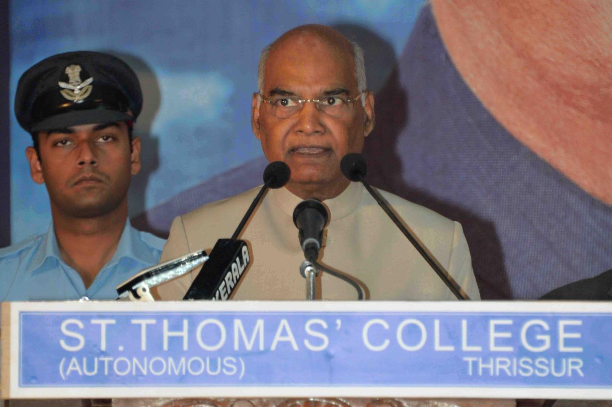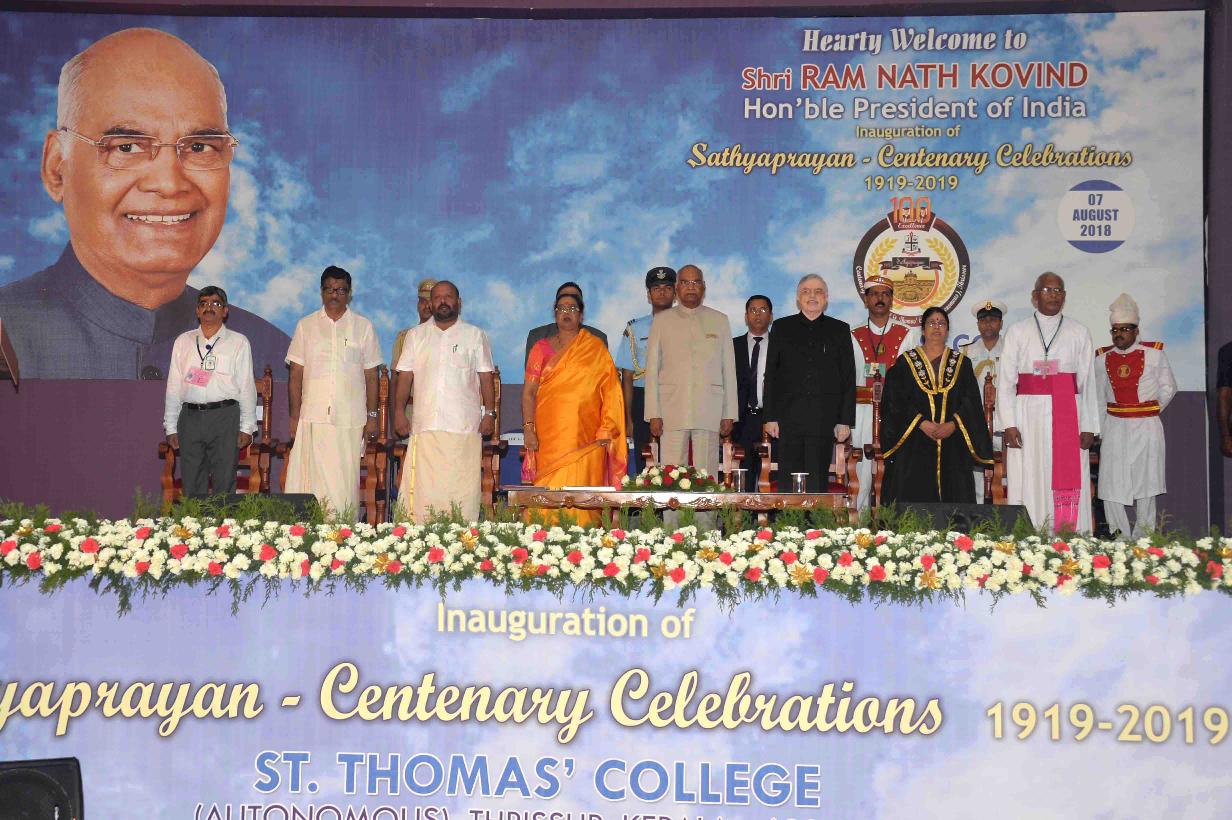 | Caption: | The President of India, Shri Ram Nath Kovind inaugurates the Centenary Celebrations of St. Thomas college and releases a Centenary Special Postal Cover, at Thrissur, in Kerala on August 07, 2018. |