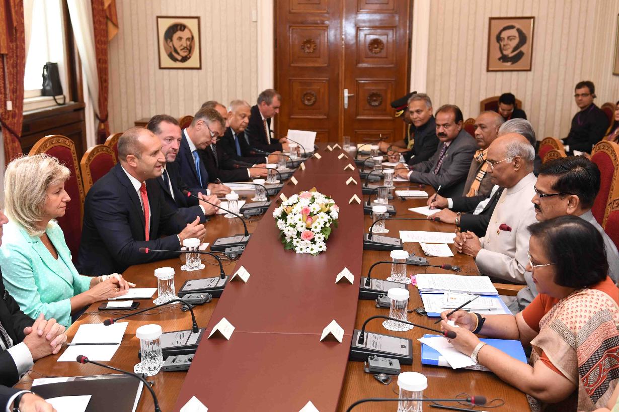 | Caption: | The President of India, Shri Ram Nath Kovind holding delegation level talks with the President of Bulgaria, H.E. Mr. Rumen Radev, at the Administration of the President Building, in Sofia, Bulgaria on September 05, 2018. |