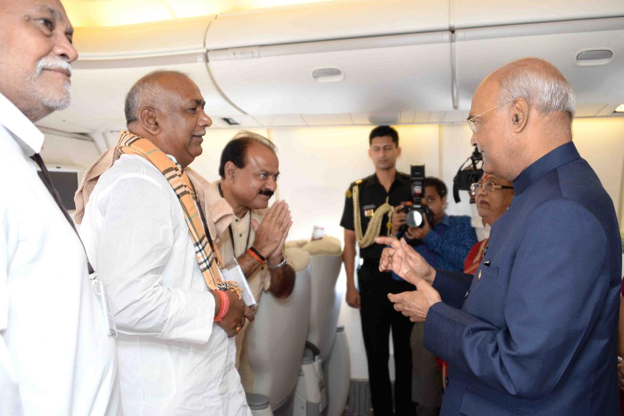 | Caption: | The President of India, Shri Ram Nath Kovind interacting with the official delegation, onboard on his way for the State visit to Cyprus, Bulgaria and Czech Republic on September 02, 2018. |