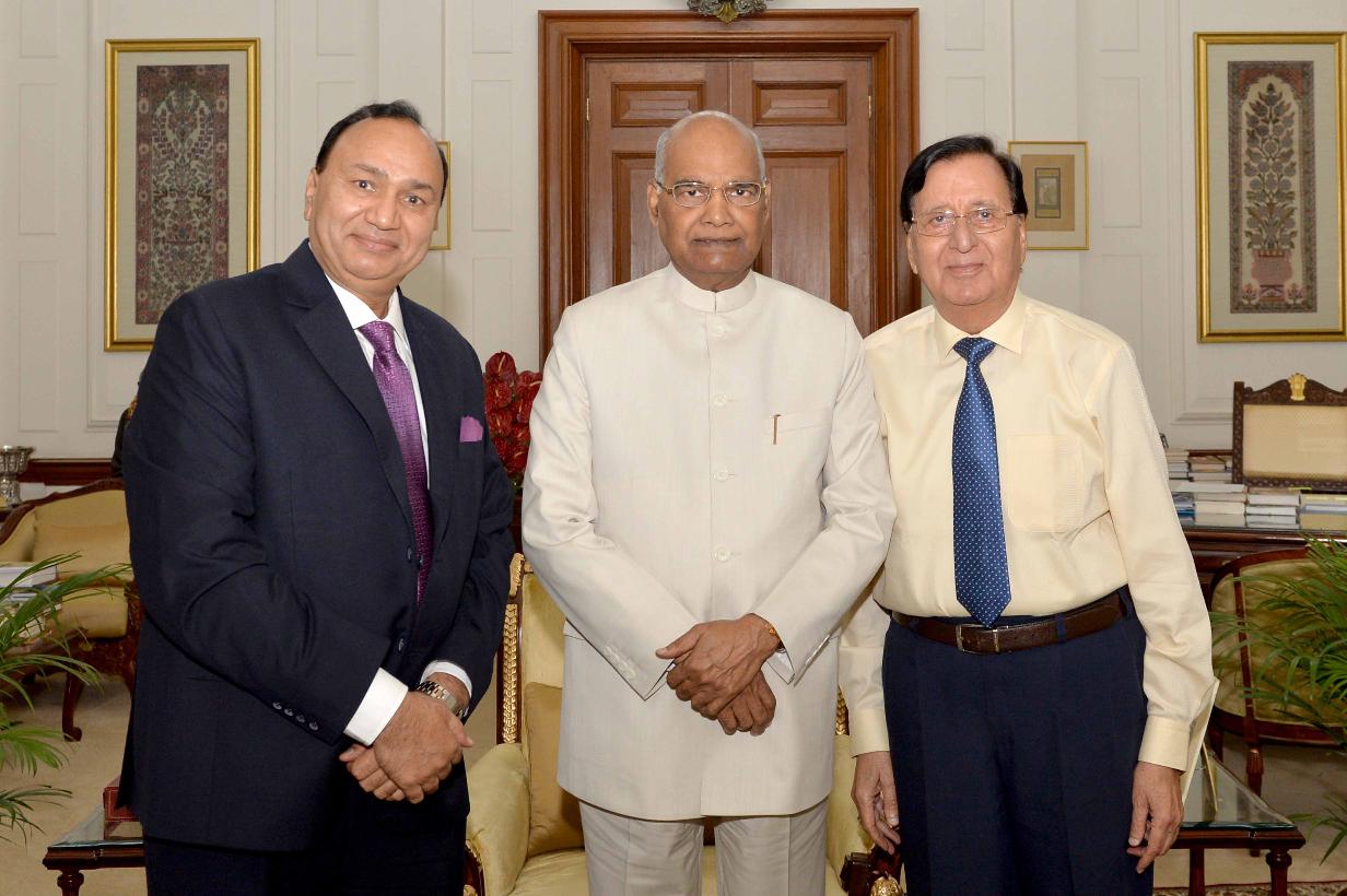| Caption: | Dr. Hari Gautam, Founder President and Dr. M.L. Swarankar, Chancellor, Mahatma Gandhi University of Medical Science & Technology, Jaipur meeting with the President of India, Shri Ram Nath Kovind, at Rashtrapati Bhavan on August 31, 2018. |