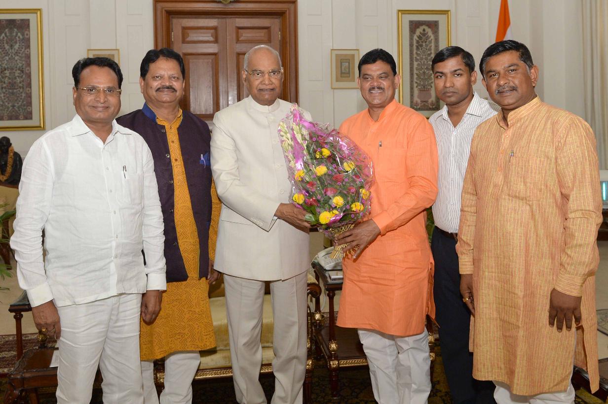 | Caption: | Adv Ramswaroop Shukraware, Secretary, BJP SC Morcha, Madhya Pradesh with others meeting with the President of India, Shri Ram Nath Kovind, at Rashtrapati Bhavan on August 31, 2018. |