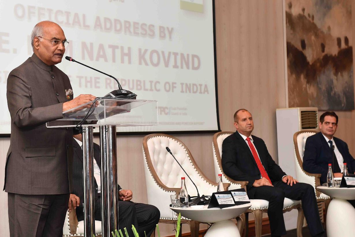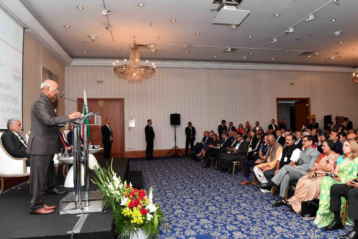 | Caption: | The President of India, Shri Ram Nath Kovind addressing the Bulgaria-India Business Forum, at Sofia Hotel Balkan, in Bulgaria on September 05, 2018. |