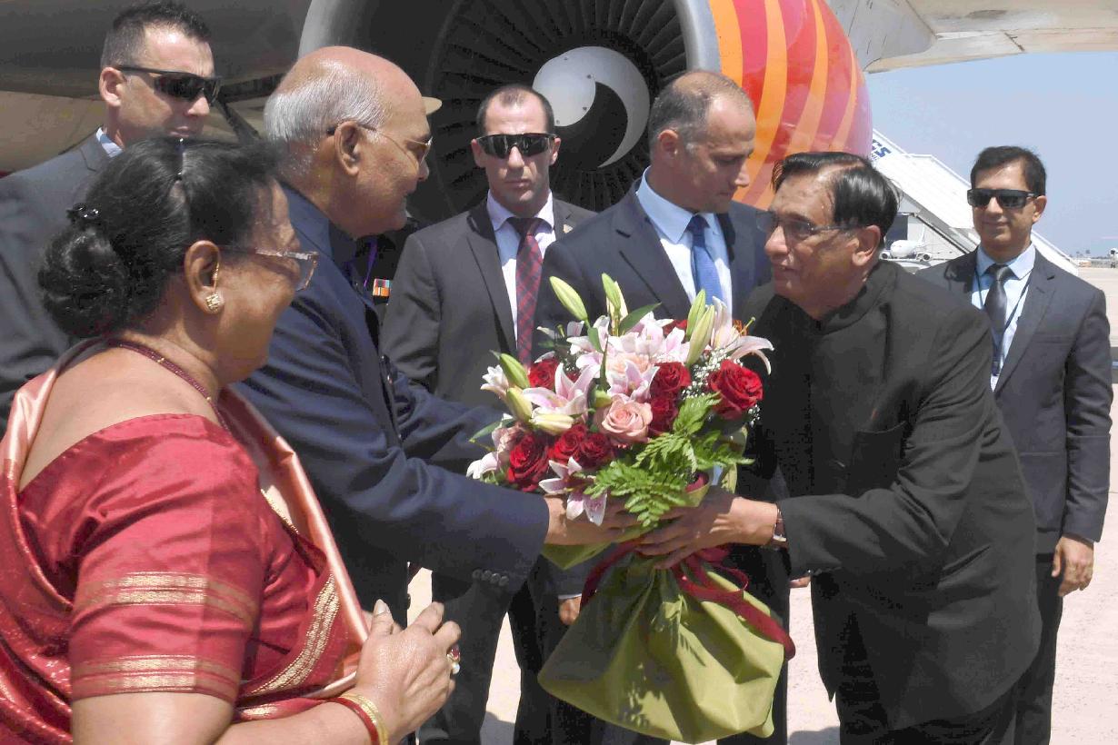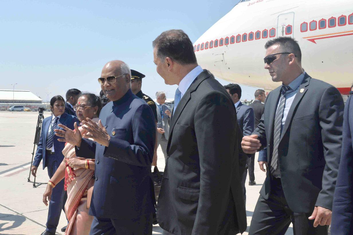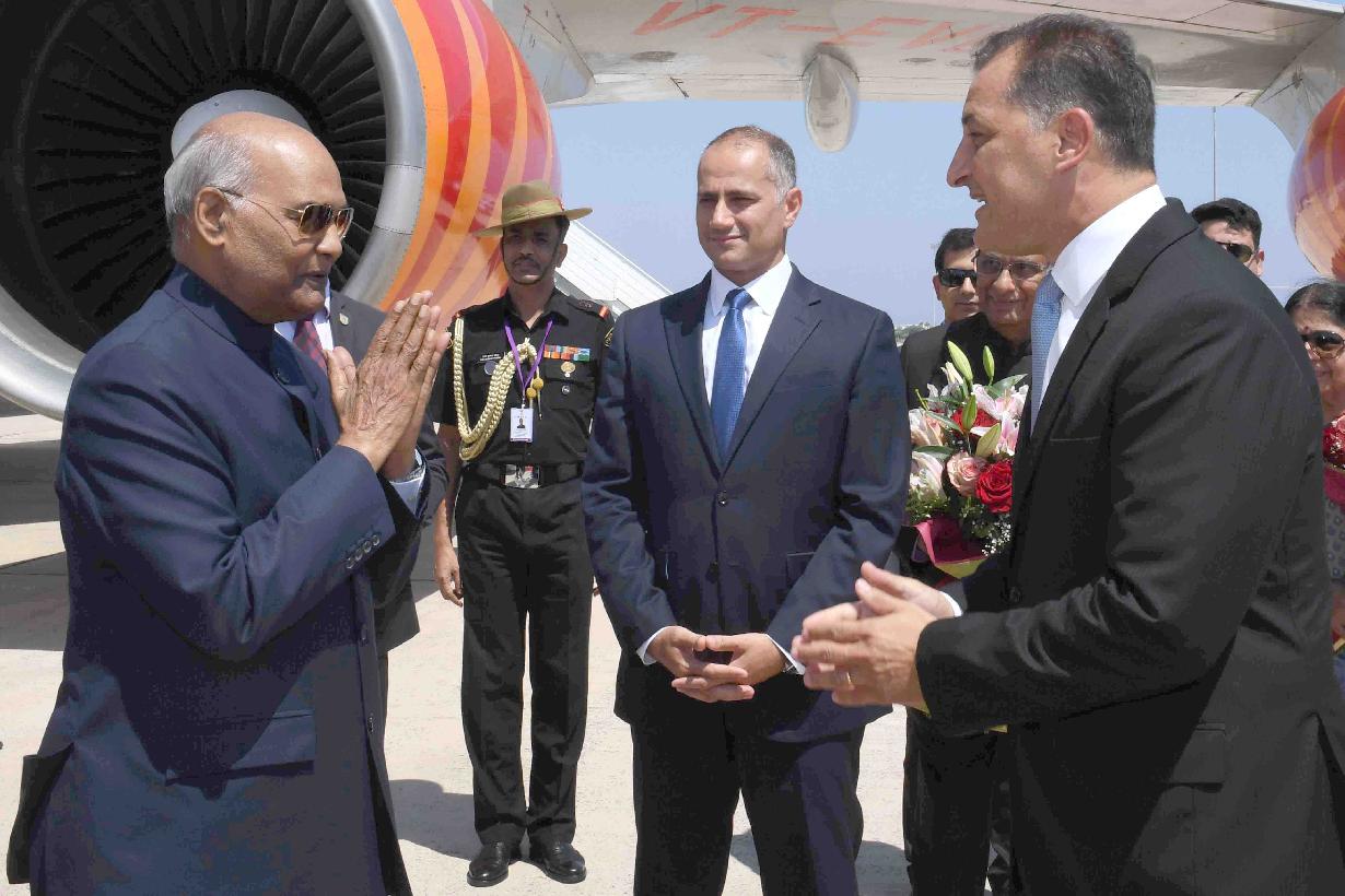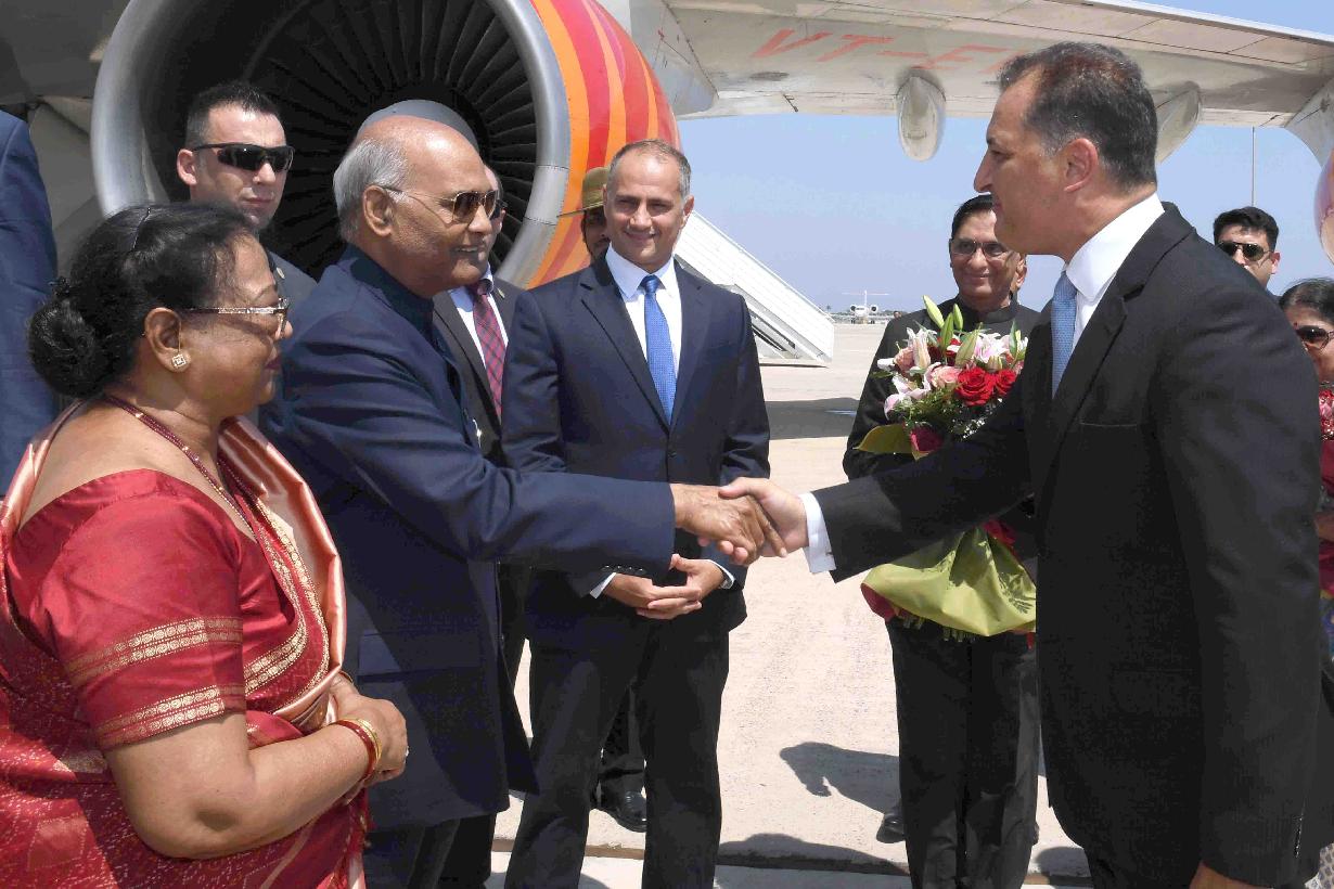 | Caption: | The President of India, Shri Ram Nath Kovind being received, at Larnaca International Airport, Cyprus on September 02, 2018. |