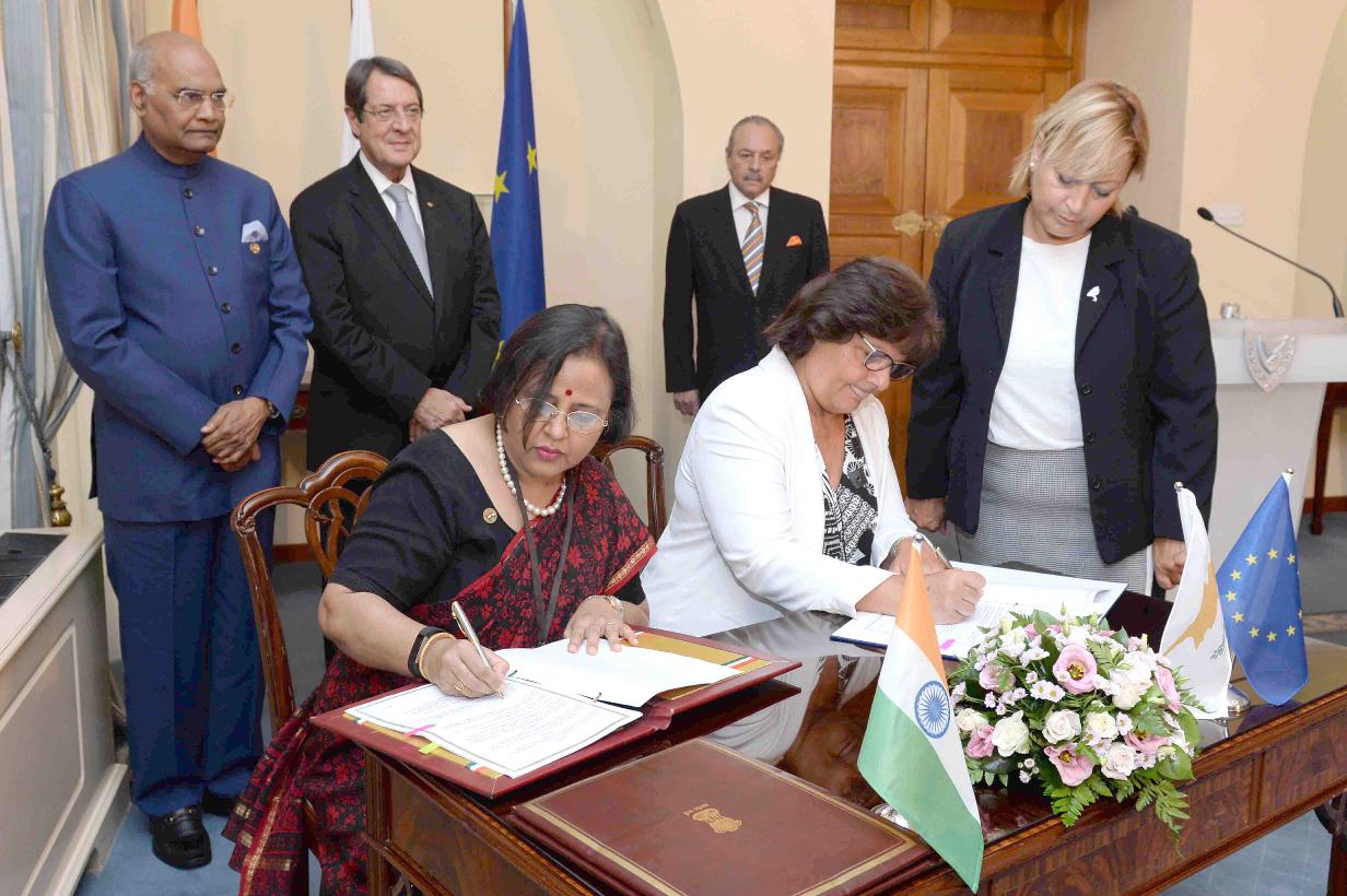 | Caption: | The President of India, Shri Ram Nath Kovind and the President of Cyprus, Mr. Nicos Anastasiades witnessing the signing of bilateral agreements between India and Cyprus, at Presidential Palace, in Nicosia, Cyprus on September 03, 2018. |