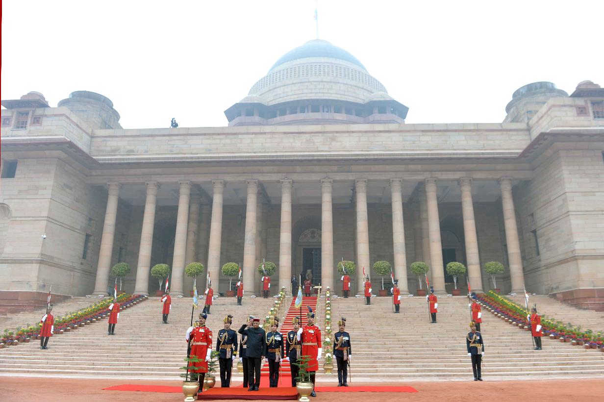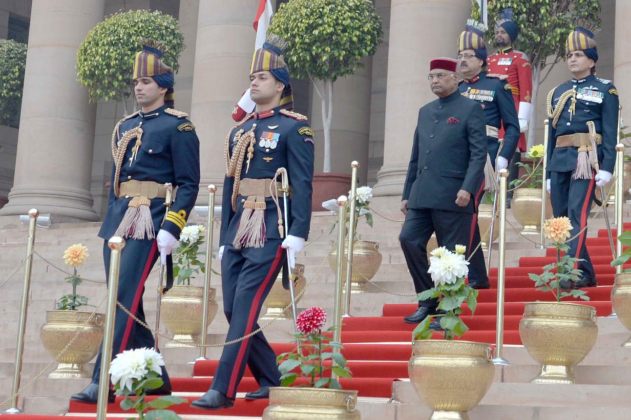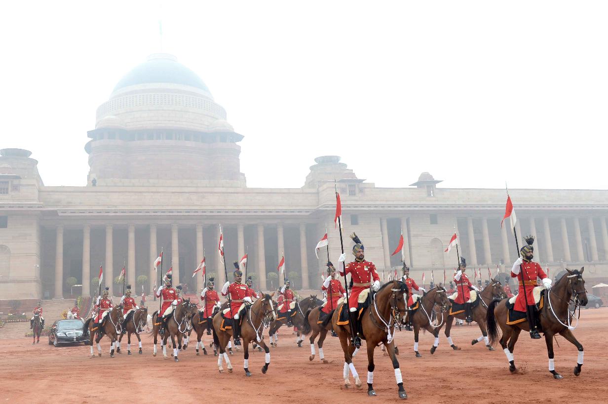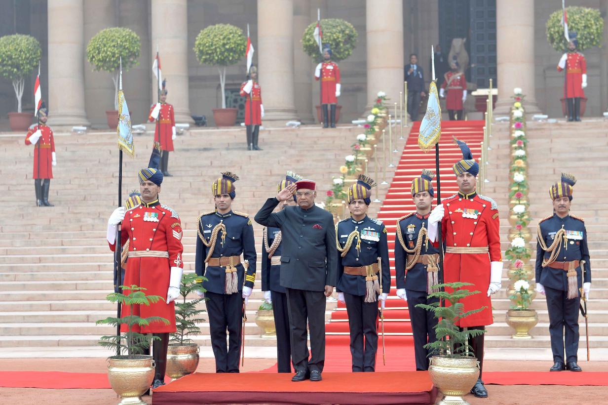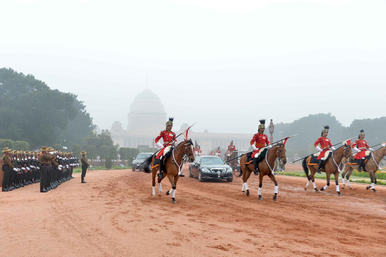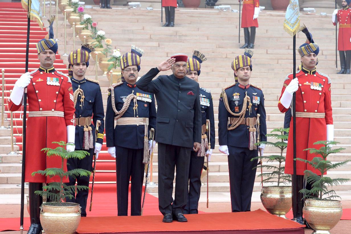 | Caption: | The President of India, Shri Ram Nath Kovind receiving National Salute from President's Body Guard at Forecourt of Rashtrapati Bhavan before leaving for Rajpath to witness the Republic Day Parade on January 26, 2018. |