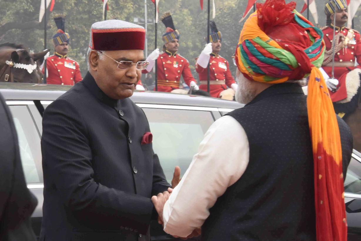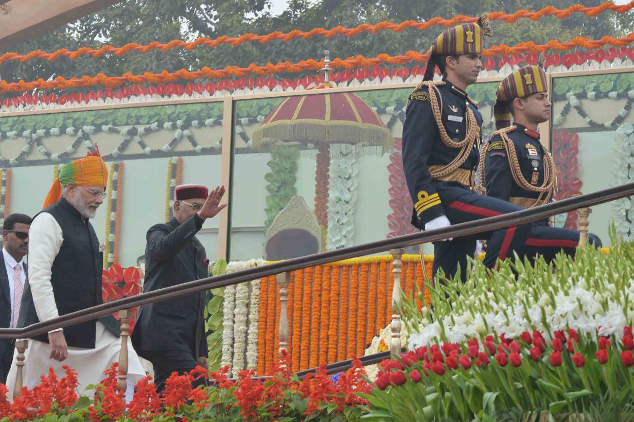 | Caption: | The President of India, Shri Ram Nath Kovind being received by the Prime Minister of India, Shri Narendra Modi at the 69th Republic Day Parade, at Rajpath, in New Delhi on January 26, 2018. |
