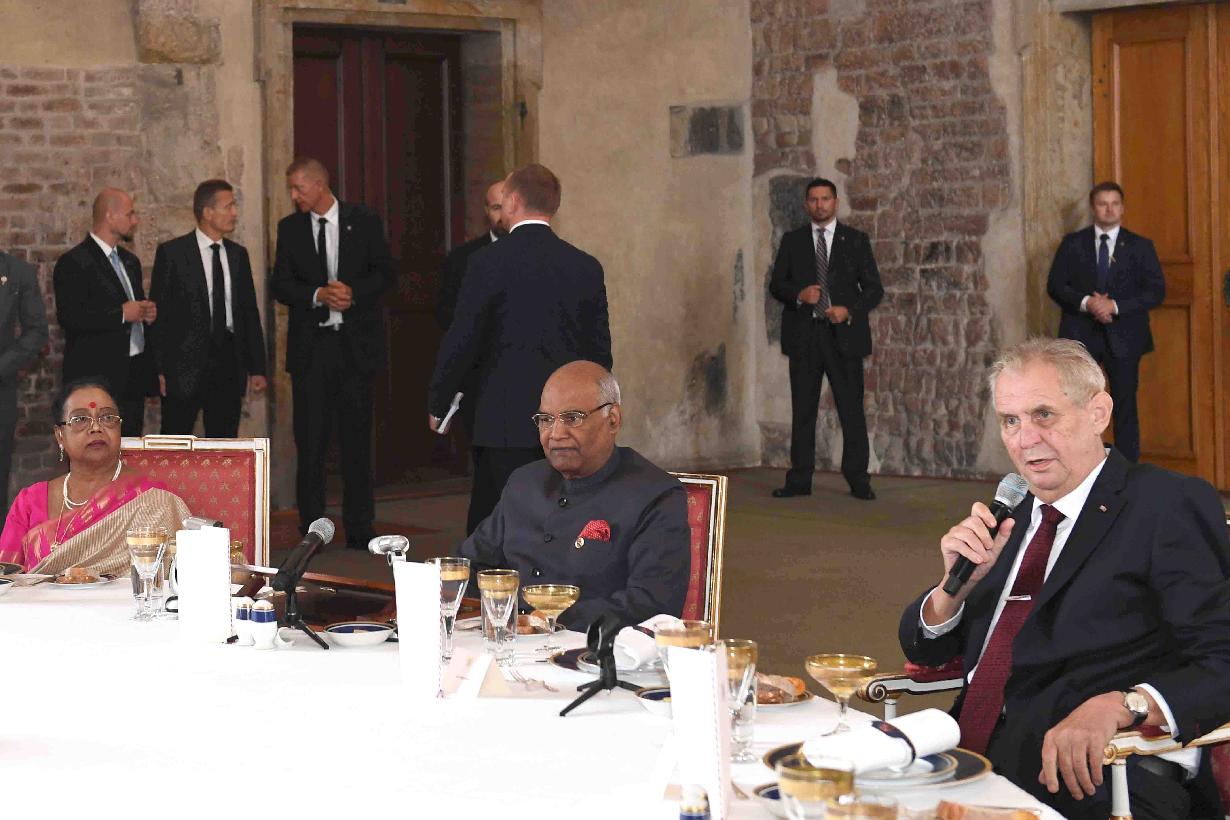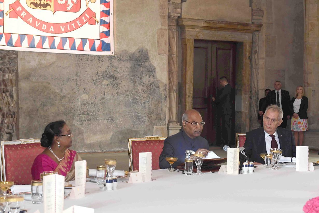 | Caption: | The President of India, Shri Ram Nath Kovind attending the luncheon banquet, hosted in his honour by the President of the Czech Republic, H.E. Mr. Milos Zeman, at 1st Courtyard, Prague Castle, in the Czech Republic on September 07, 2018. |