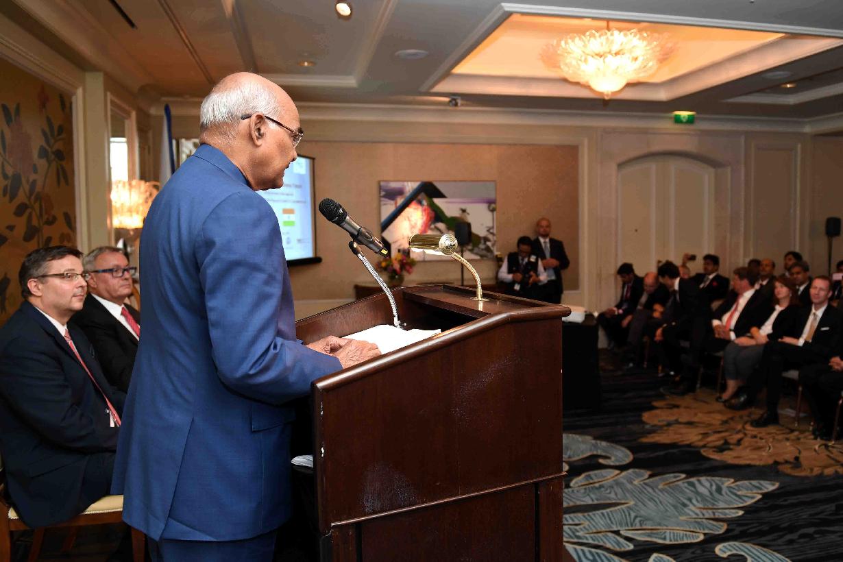 | Caption: | The President of India, Shri Ram Nath Kovind addressing the India-Czech Republic Business Forum, at Four Seasons Hotel, Prague, in the Czech Republic on September 07, 2018. |