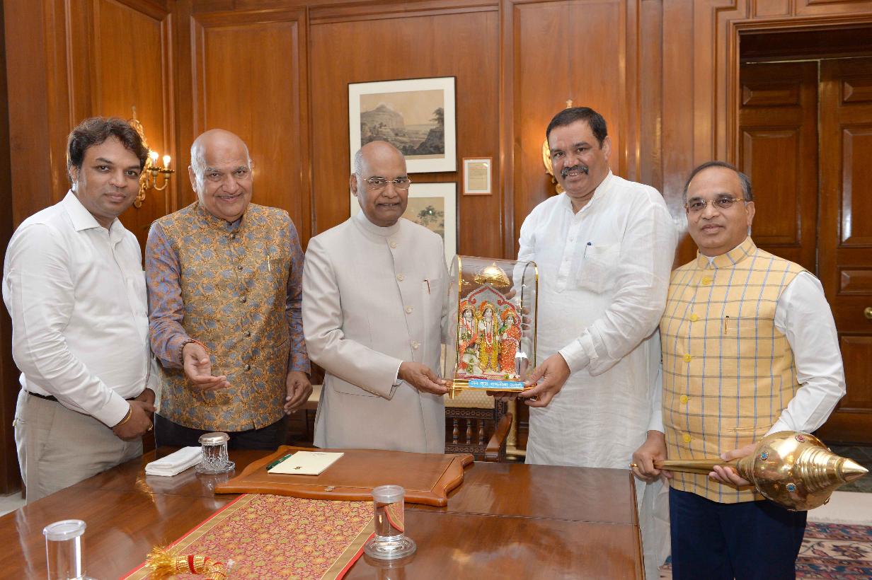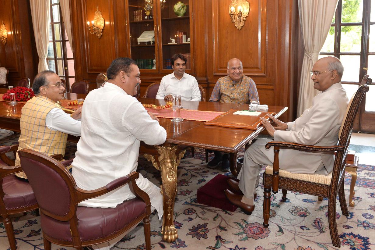 | Caption: | The Minister of State for Social Justice & Empowerment, Shri Vijay Kumar Sampla alongwith Shri Satyabhushan Jain and others from Lav Kush Ramlila Committee, Delhi meeting with the President of India, Shri Ram Nath Kovind, at Rashtrapati Bhavan on September 12, 2018. |