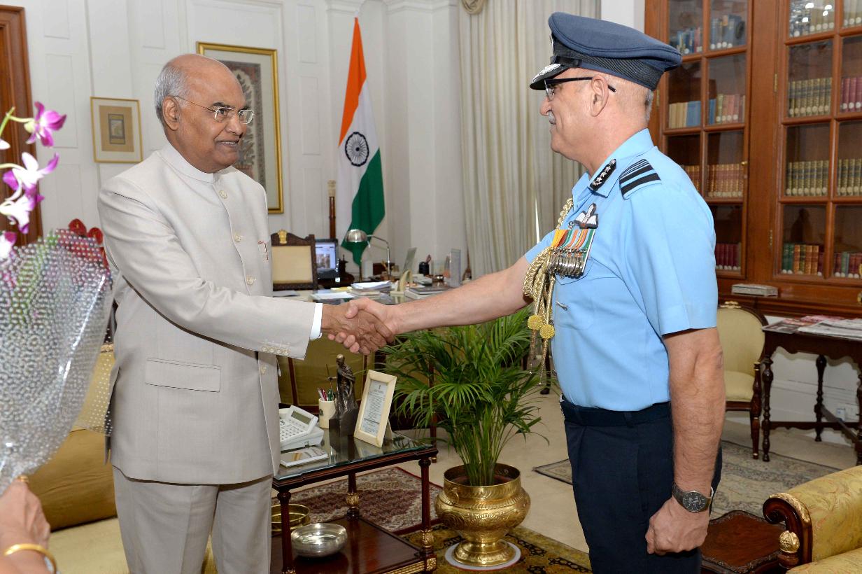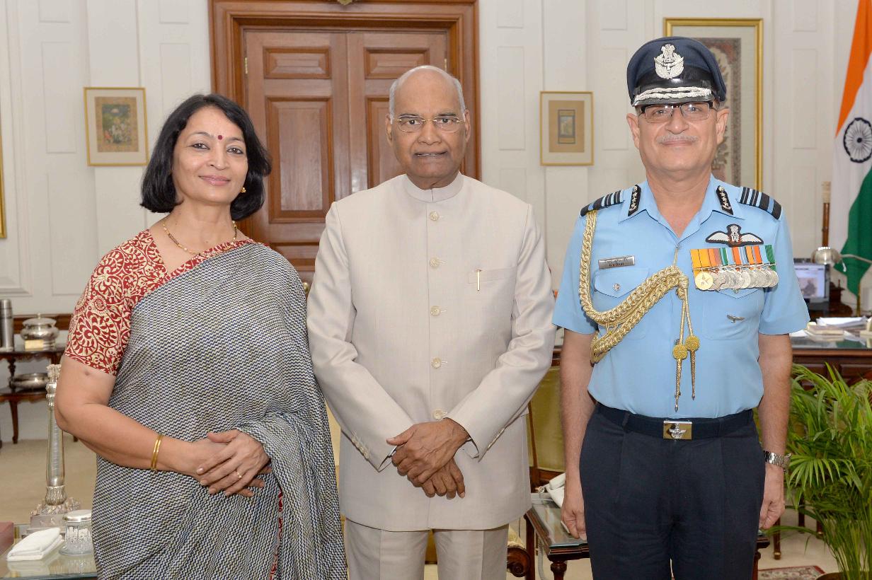 | Caption: | Air Marshal R.K. Dhir, AOC-in-C, HQ SWAC, Gujrat and Hony. ADC to the President alongwith his spouse Smt. Neelam Dhir meeting with the President of India, Shri Ram Nath Kovind, at Rashtrapati Bhavan on September 12, 2018. |
