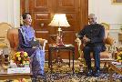 | Caption: | The State Counsellor of Myanmar, H.E. Daw Aung San Suu Kyi calling on the President of India, Shri Ram Nath Kovind, at Rashtrapati Bhavan on January 27, 2018. |