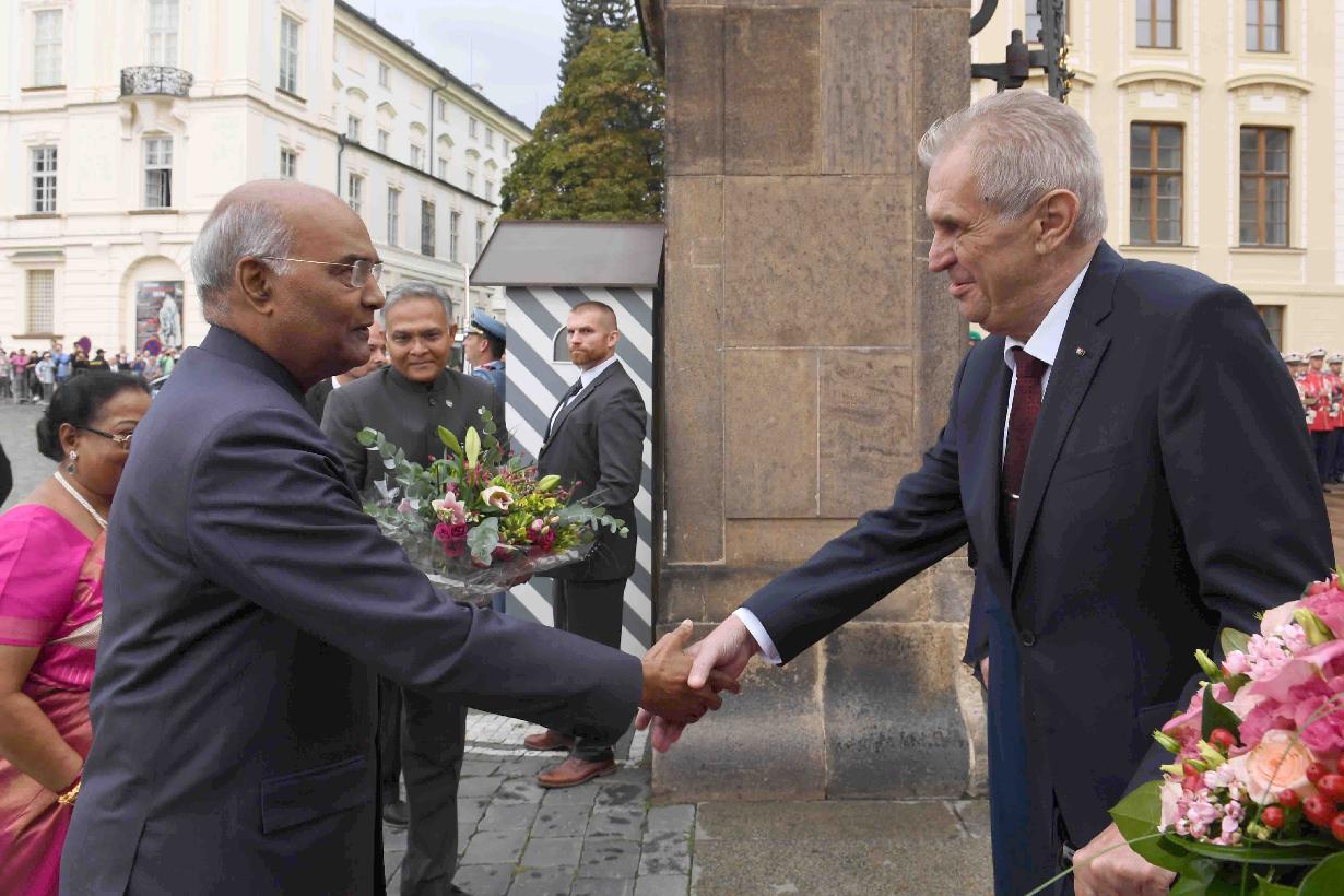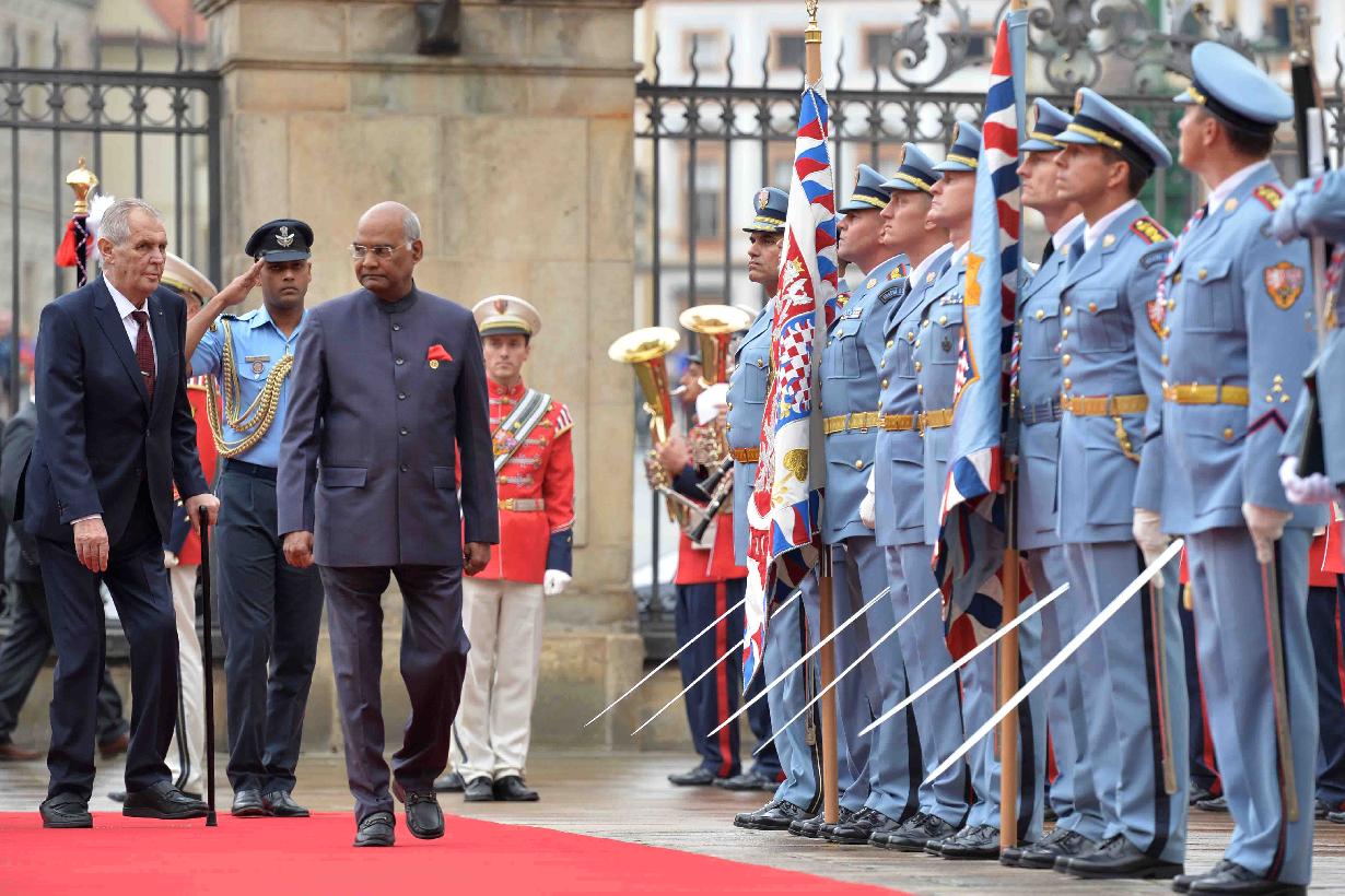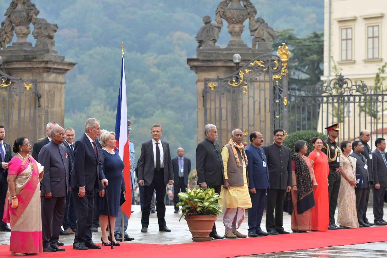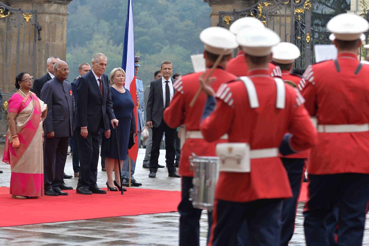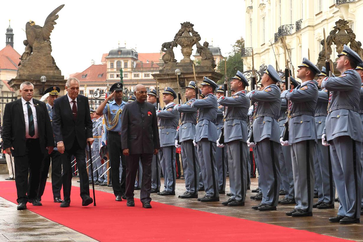 | Caption: | The President of India, Shri Ram Nath Kovind being accorded a ceremonial welcome by the President of the Czech Republic, H.E. Mr. Milos Zeman, at 1st Courtyard, Prague Castle, in the Czech Republic on September 07, 2018. |