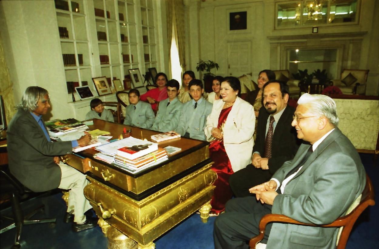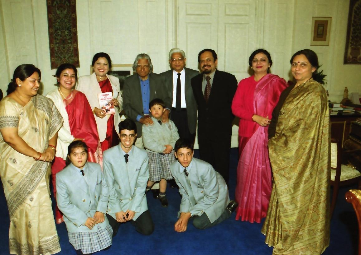 | Caption: | The President of India, Dr A P J Abdul Kalam with Smt Usha Ram, Principal, Laxman Public School, Shri Hari Ram, Special Children and Special Educators at Rashtrapati Bhavan in New Delhi on Dec 02, 2003 |