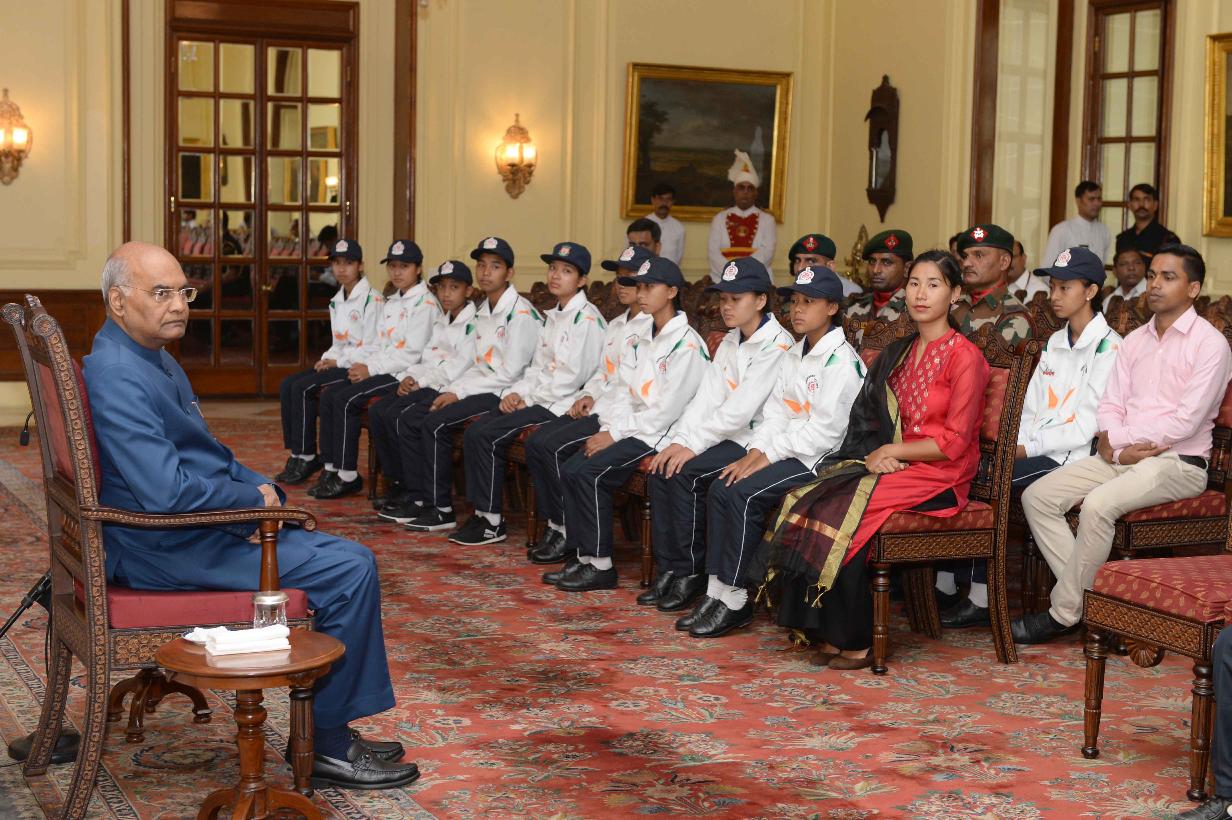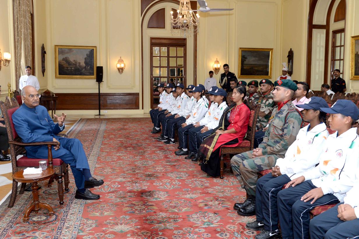 | Caption: | The President of India, Shri Ram Nath Kovind meeting with the students and teachers from Mon, Nagaland attending National Integration Tour, organised by Eastern Command of the Indian Army, at Rashtrapati Bhavan on September 13, 2018. |