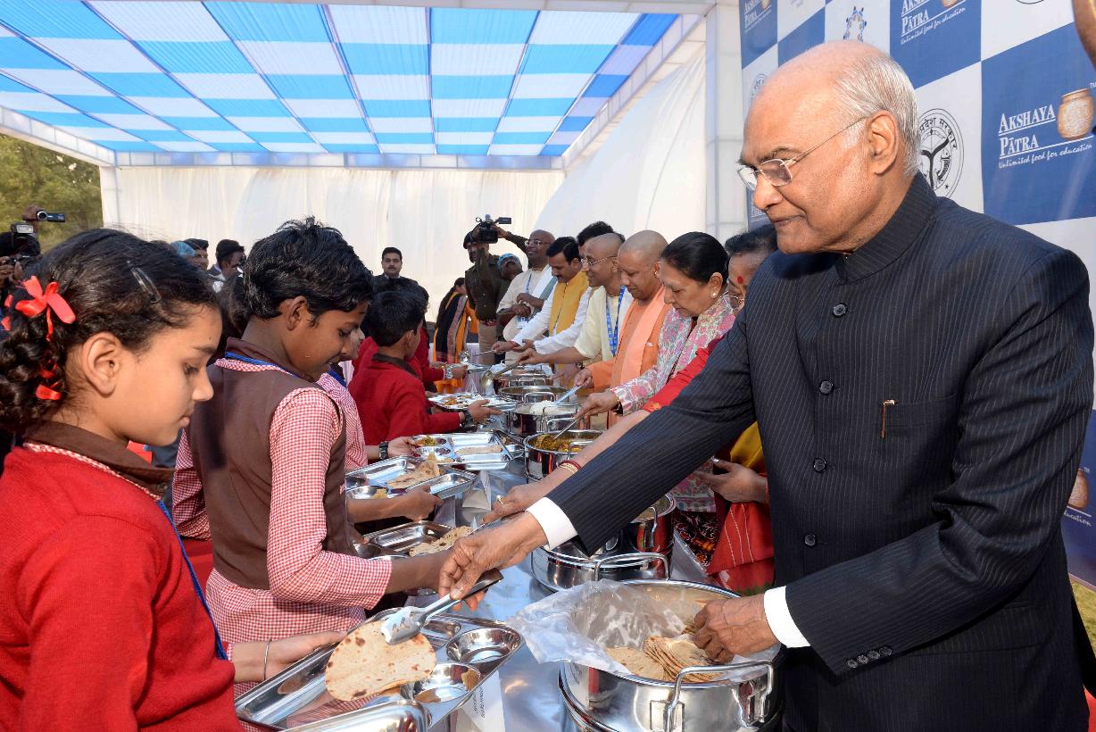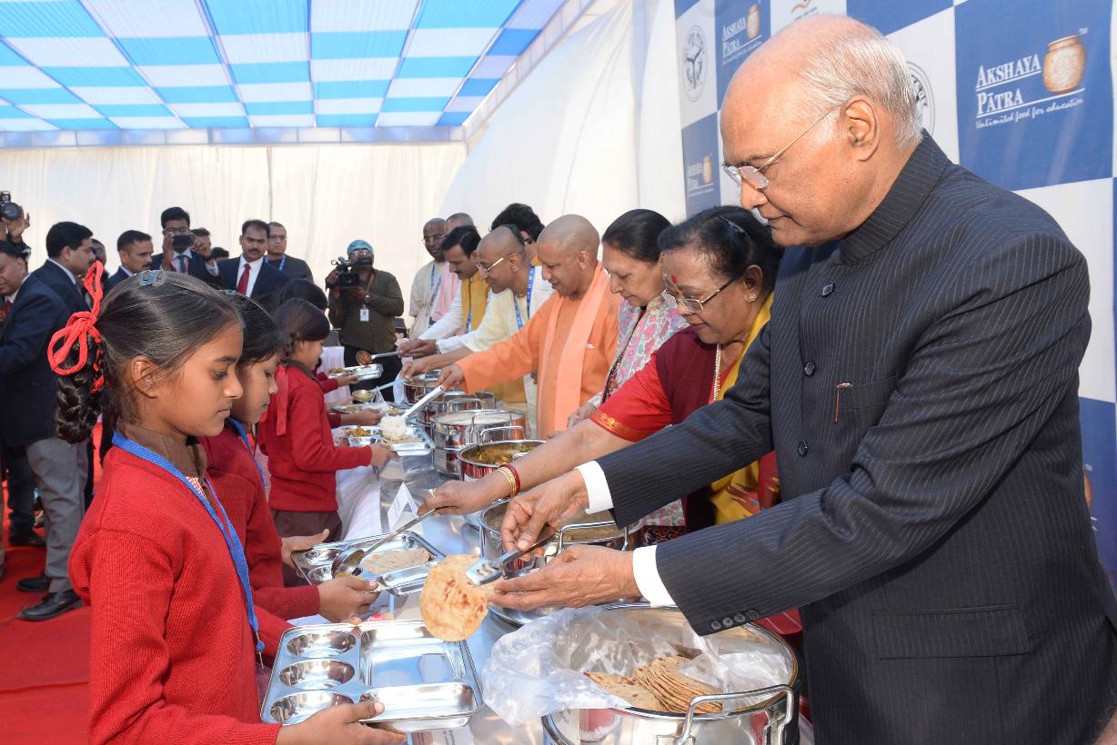 | Caption: | The President of India, Shri Ram Nath Kovind visits Akshaya Patra foundation, in Vrindavan, Uttar Pradesh on November 28, 2019. |
