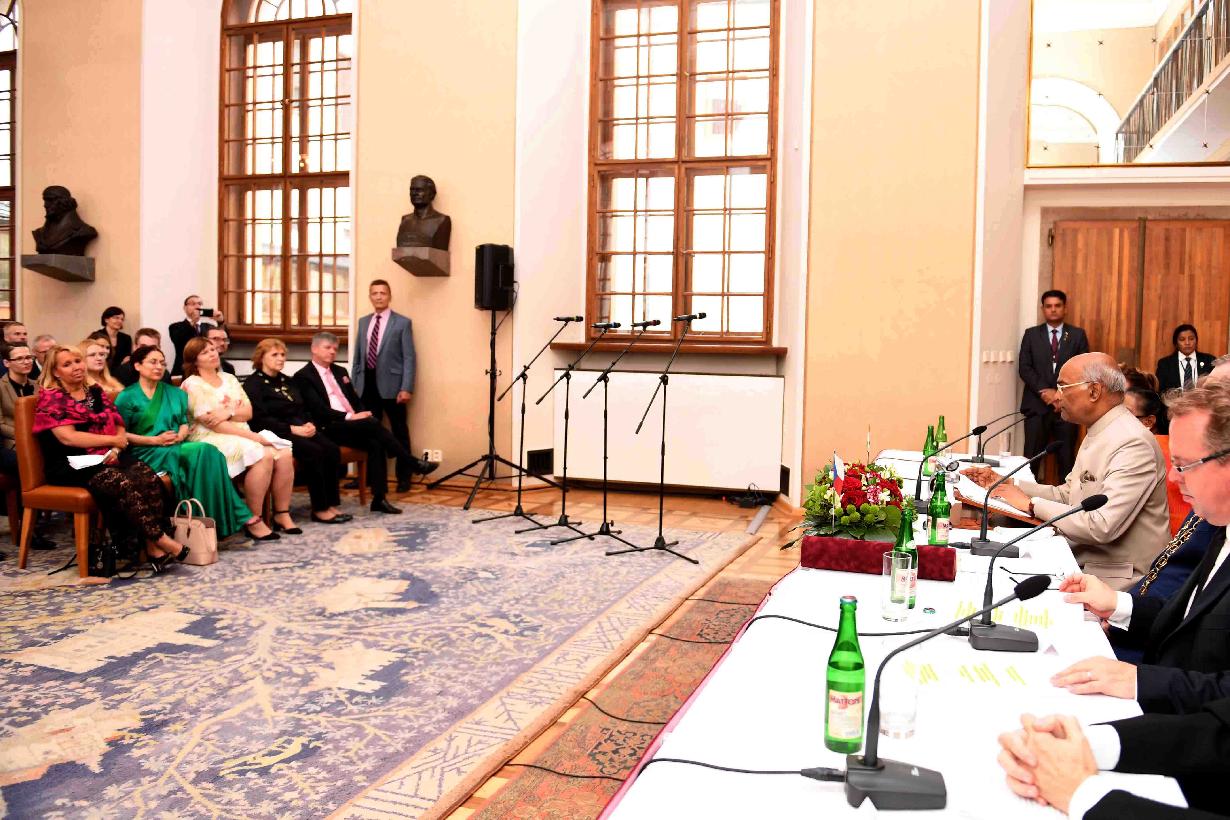 | Caption: | The President of India, Shri Ram Nath Kovind attending a round-table discussion of Indologists, at the University of Charles, Prague, in the Czech Republic on September 08, 2018. |
