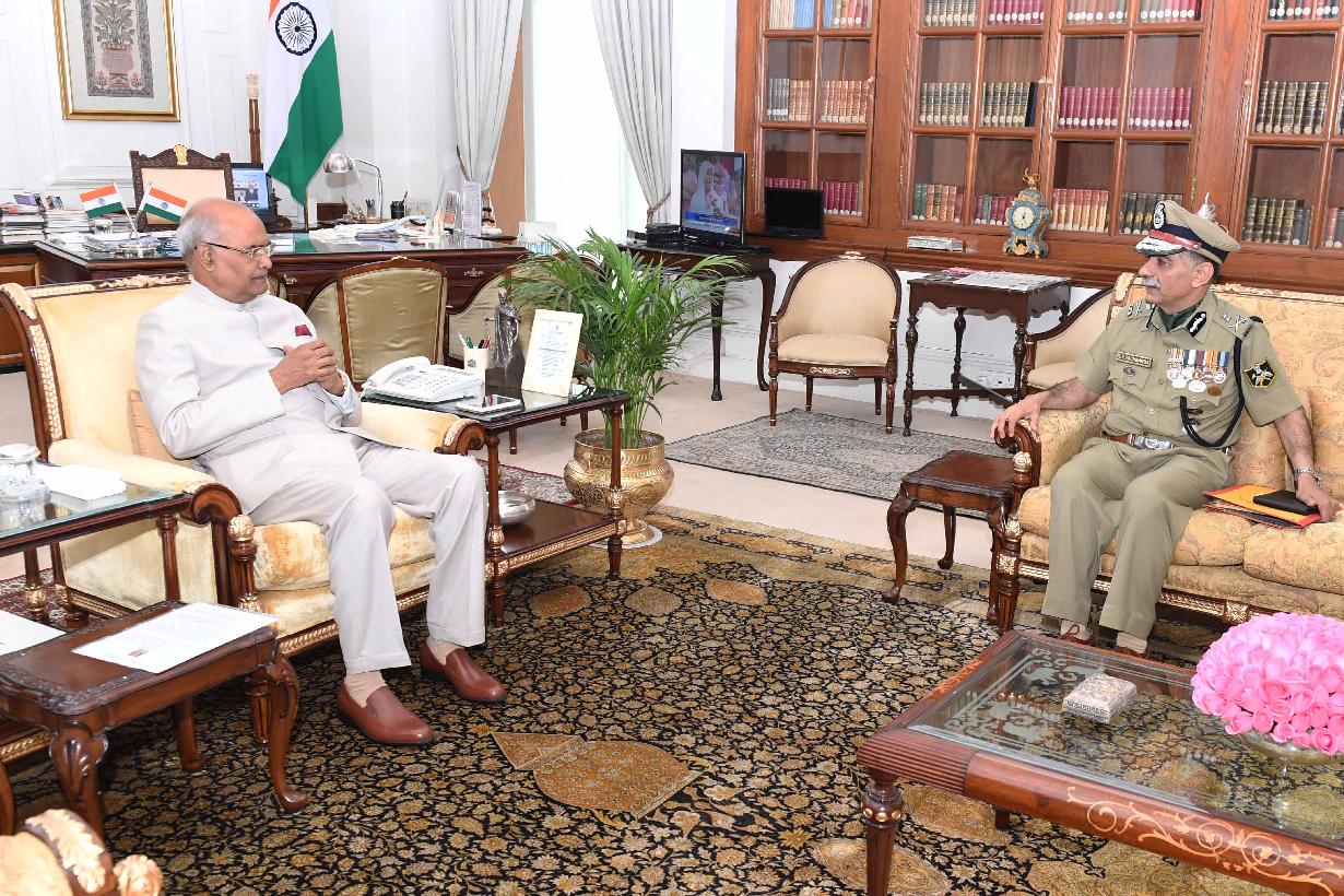 | Caption: | Shri R.K. Panchnanda, Director, General, ITBP meeting with the President of India, Shri Ram Nath Kovind, at Rashtrapati Bhavan on September 01, 2018. |