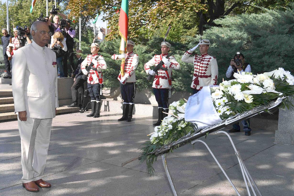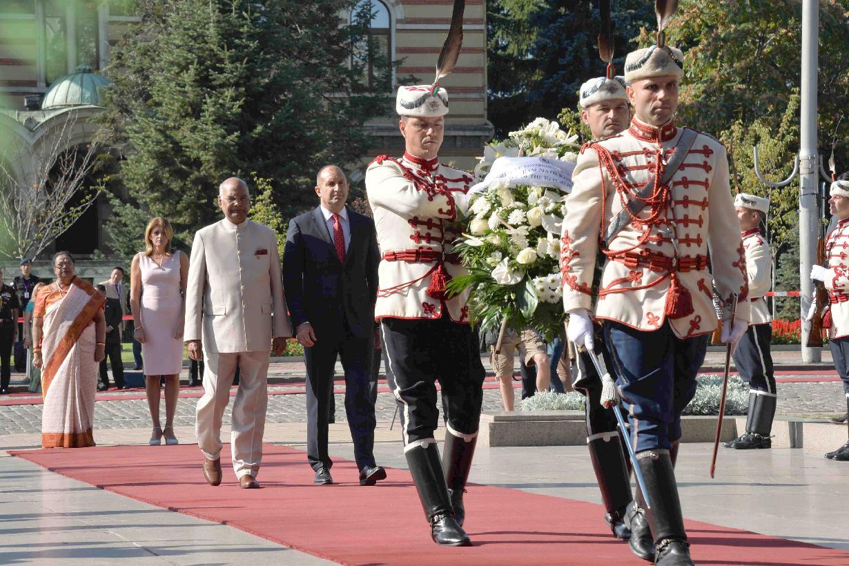 | Caption: | The President of India, Shri Ram Nath Kovind laying wreath at the Unknown Soldier's Monument, at Saint Alexander Nevski Square, in Sofia, Bulgaria on September 05, 2018. |