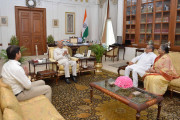 | Caption: | Shri Laxmikant Shukla from Noida with others meeting with the President of India, Shri Ram Nath Kovind, at Rashtrapati Bhavan on August 29, 2018. |