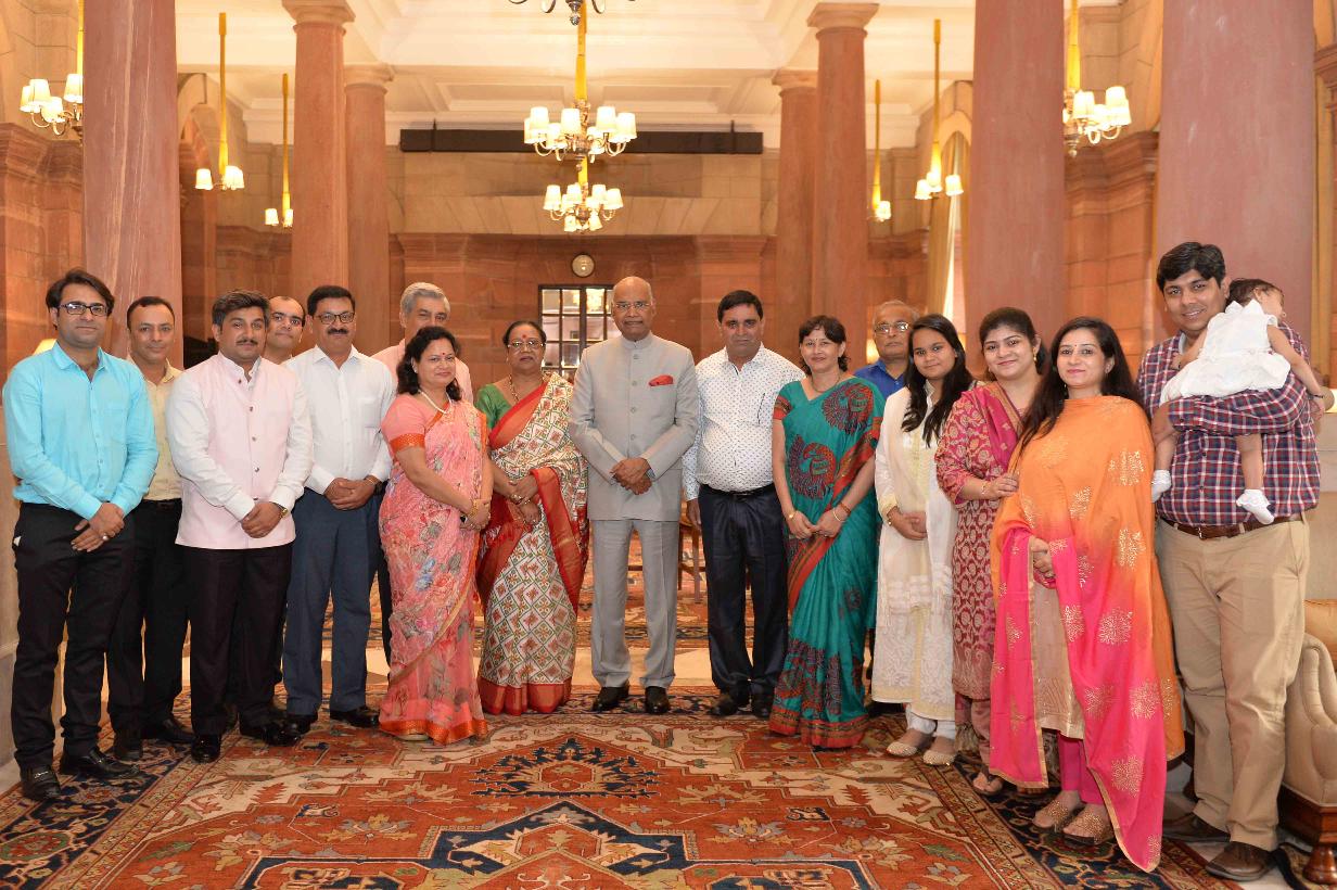 | Caption: | Shri Sunil Seth and his family members from Kanpur meeting with the President of India, Shri Ram Nath Kovind, at Rashtrapati Bhavan on August 30, 2018. |