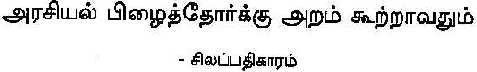 It means, people who are in high and responsible positions, if they go against righteousness, the righteousness itself will get transformed into a destroyer. Whoever deviates from righteousness, whether they are individual or states, they are responsible for their own actions. This message is brought out very clearly by the Elangovadikal (a Jain monk) in Silapathikaram. Silapathikaram is one of the five great epics written nearly 2000 years ago in Tamil language. The story of Kannagi plays an important role in history of Madurai. Kovalan a successful business man married "Kannagi" who was the beautiful daughter of a merchant by name "Maanaikkan".